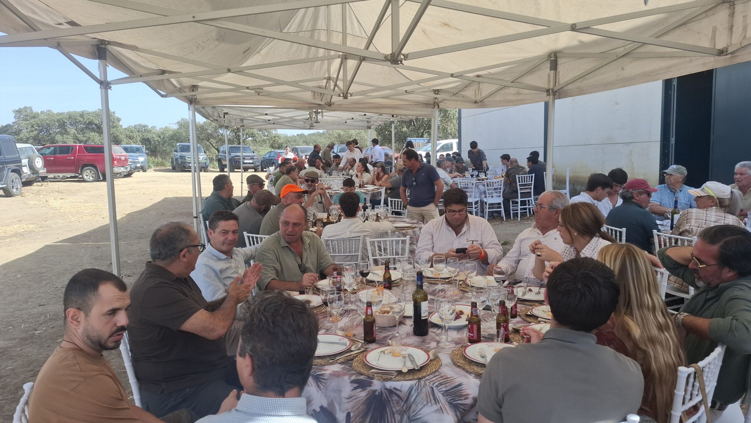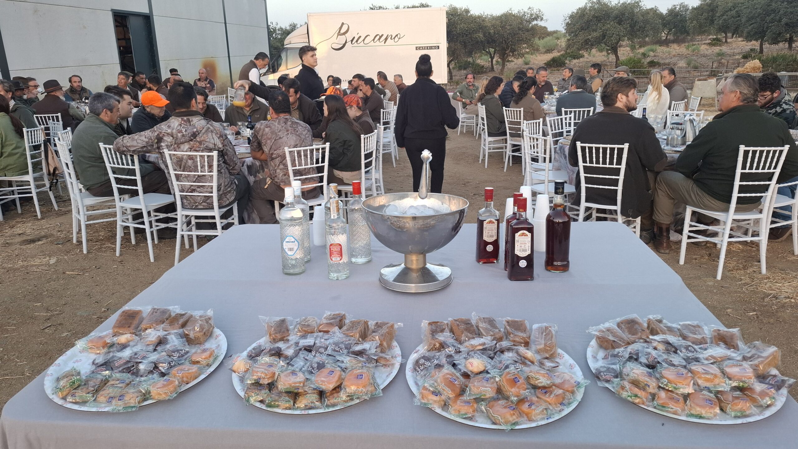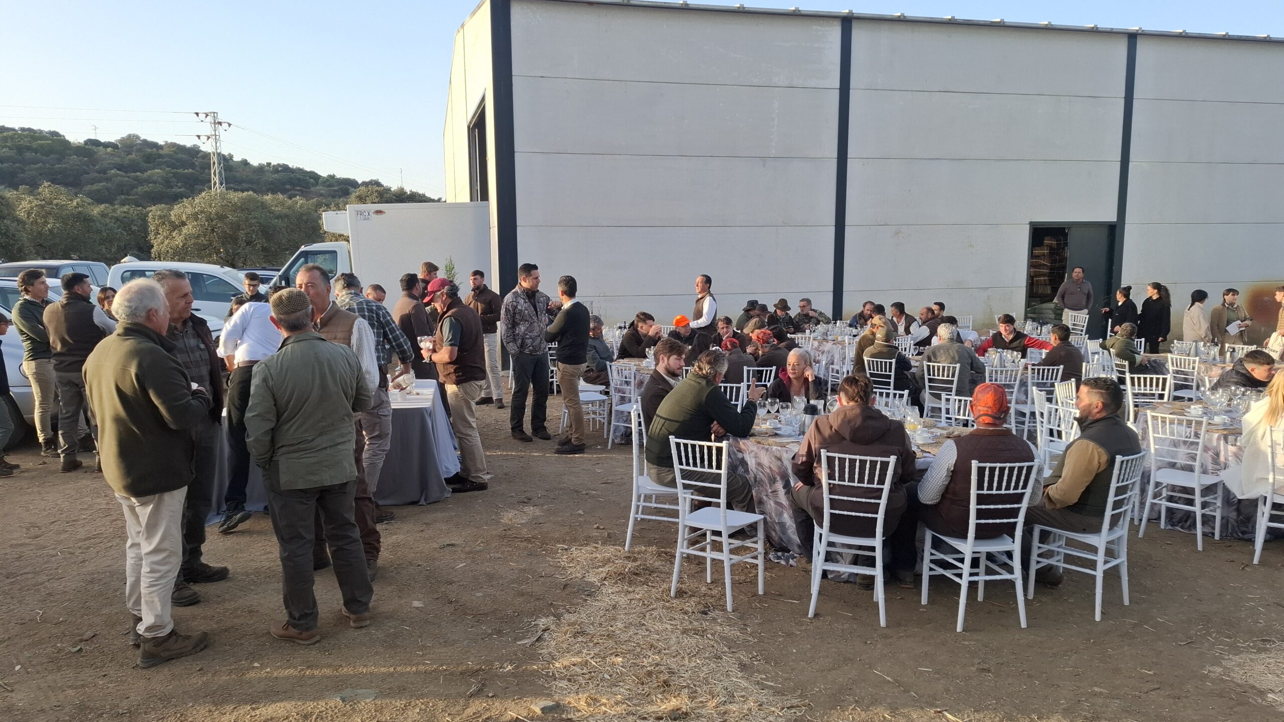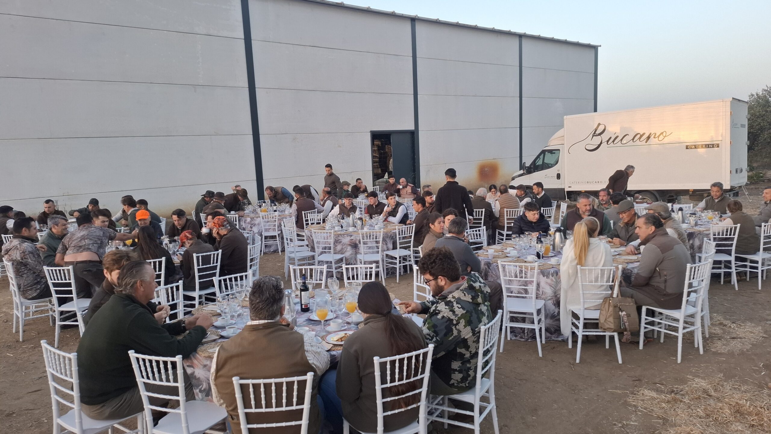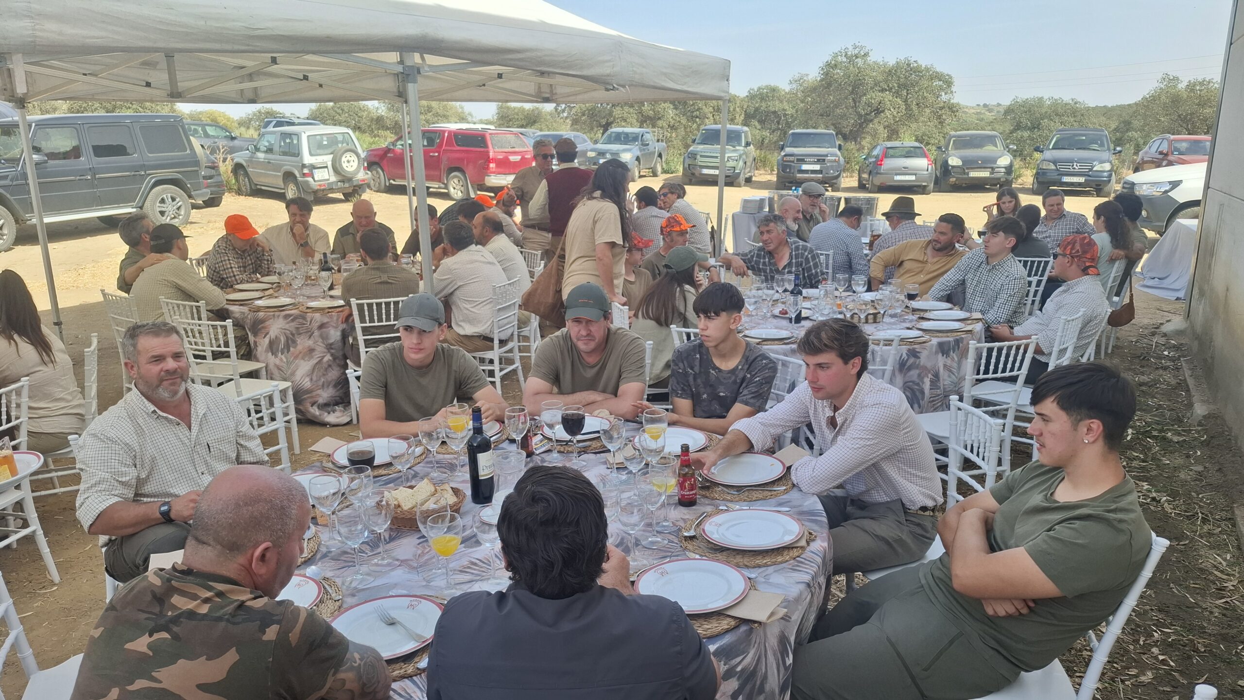 El excelente catering de Moraima, que ya nos recibió con un extraordinario desayuno por la mañana, nos deleitó con un fabuloso almuerzo con el que los monteros celebramos este segundo día de la temporada, primer día de montería de Guadalcazal.