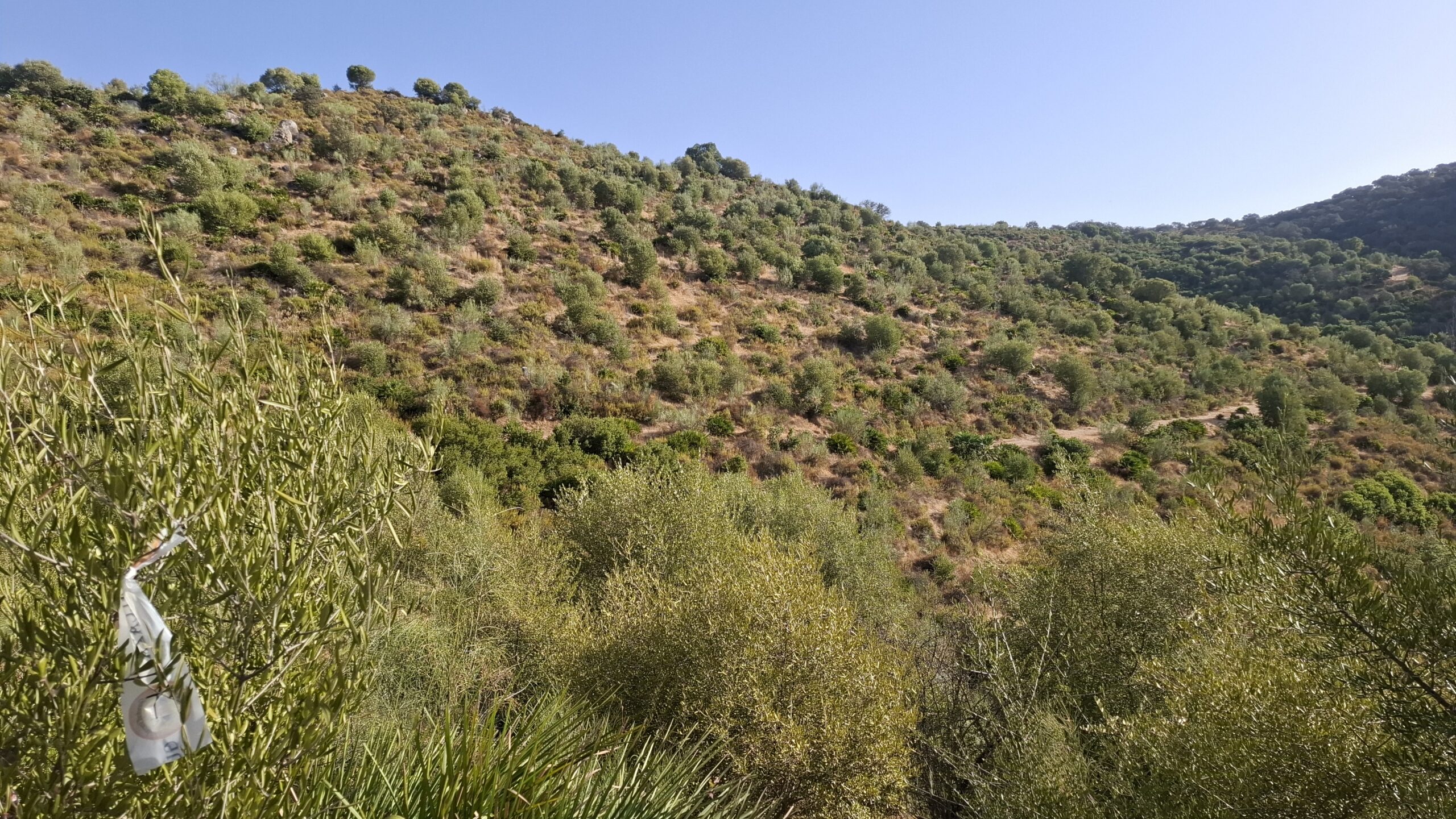 Pero nos dimos de bruces con el Lorenzo, y el 12 de octubre el astro rey quiso sumarse a la fiesta de Guadalcazal y nos fastidió de lo lindo. Y eso que a las 9:30h estaban saliendo los cierras y a las 10:30h ya estaban los perros batiendo aquellos profundos barrancos. Barrancos en los que este año no había el agua necesaria para aliviar el gran esfuerzo que hicieron las 15 rehalas convocadas por Moisés García para batir esta cumplidora mancha.