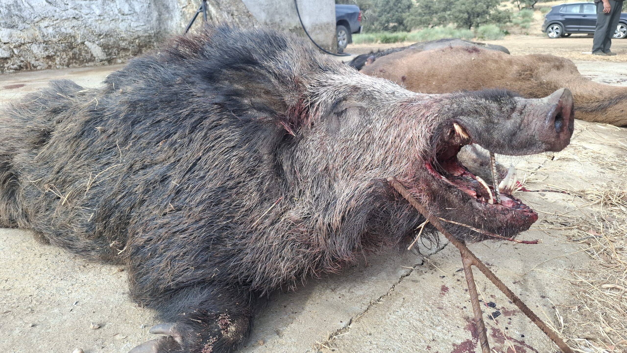 En otras armadas también hubo fiesta y monteros como Juan José, se hacían con dos cochinos tras una mañana de máxima tensión. Y es que el 80% de los cazadores asistentes tuvieron sus opciones de tiro en esta calurosa mañana.