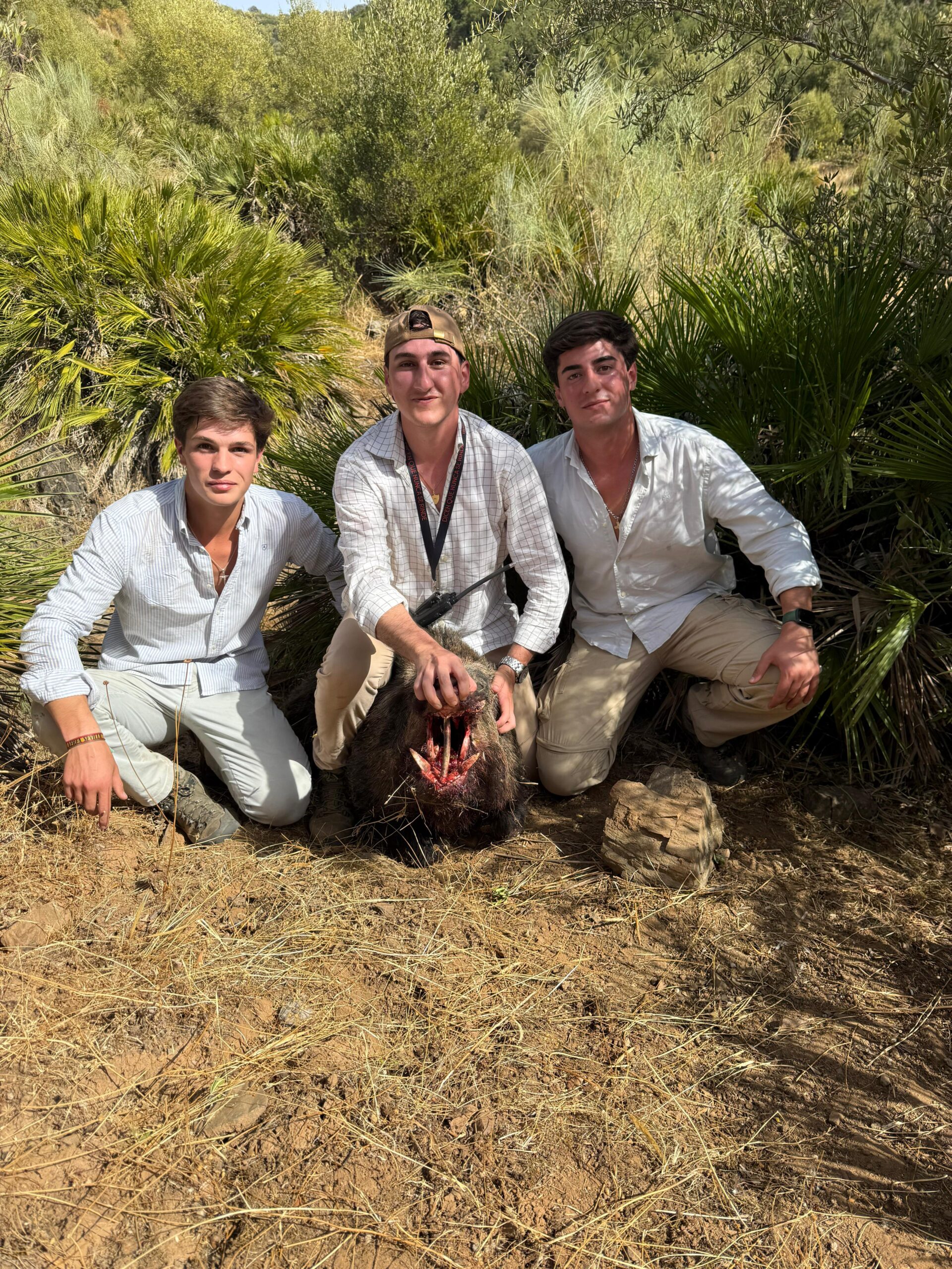 Tampoco lo pasó mal el nº7 de esta armada. Desde esa fantástica atalaya vio gran parte del monteo y como las rehalas guiadas por José Antonio “Forraje” batían palmo a palmo aquel profundo barranco levantando mucha caza. Fruto de este trabajo fue la piara de 6 lechones que le entraron a tiradero, dejándolos pasar con buen criterio, y los dos primalones que se fueron de rositas tras las dos salvas de recibimiento que les soltó el montero. Una cochina pagó posteriormente los platos rotos e inauguró la casilla del cazador esta temporada.