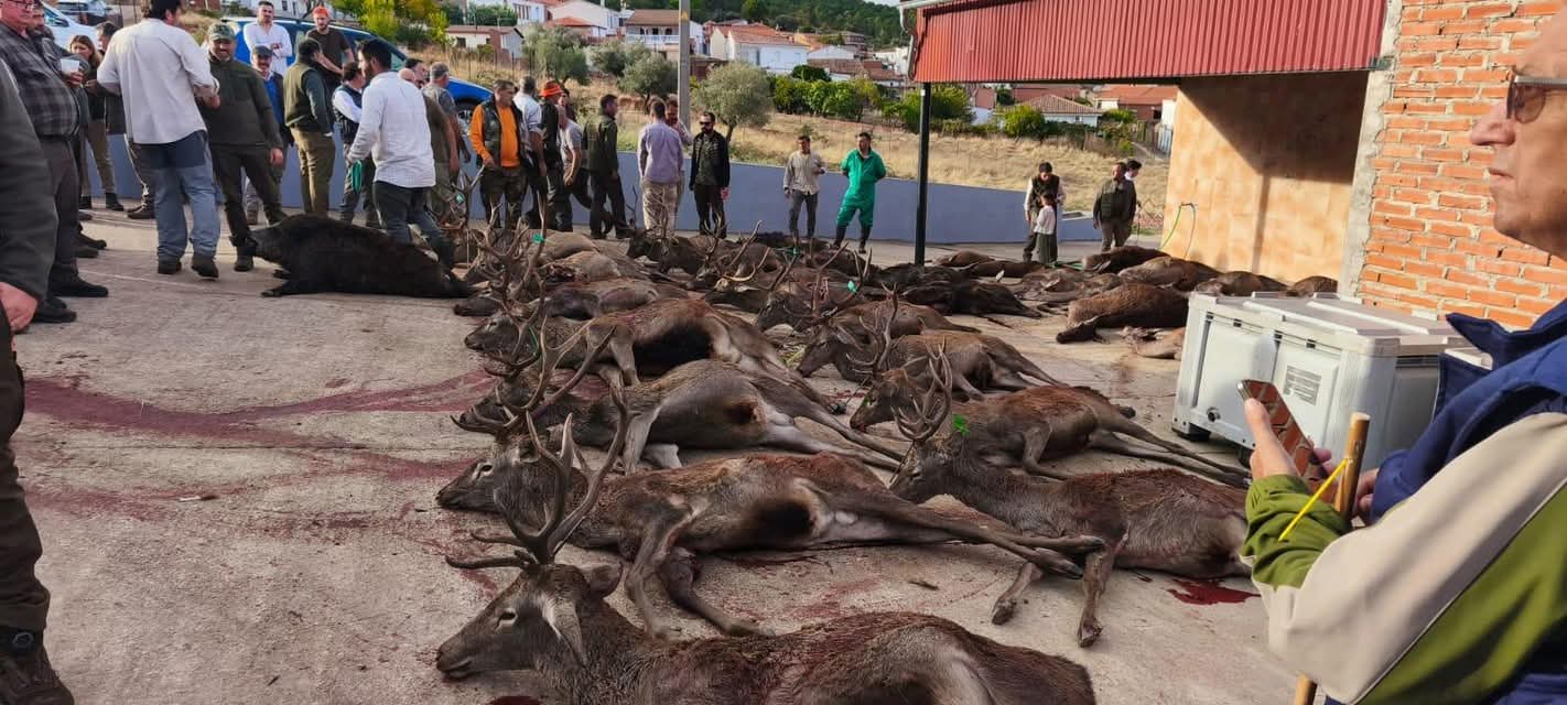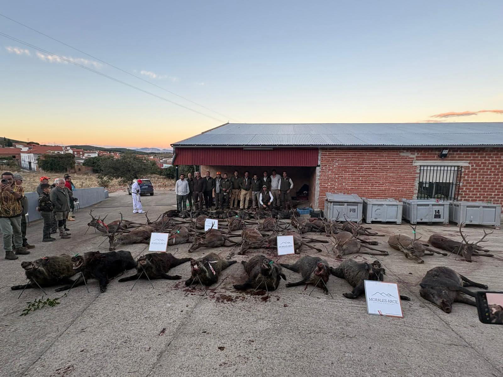 Resultado final después de aparecer un venado esta mañana: 18 venados (uno para medir + otro bonito de montería), 21 jabalíes de tiro + 3 de agarre, con 7 navajeros, y 10 ciervas de gestión.