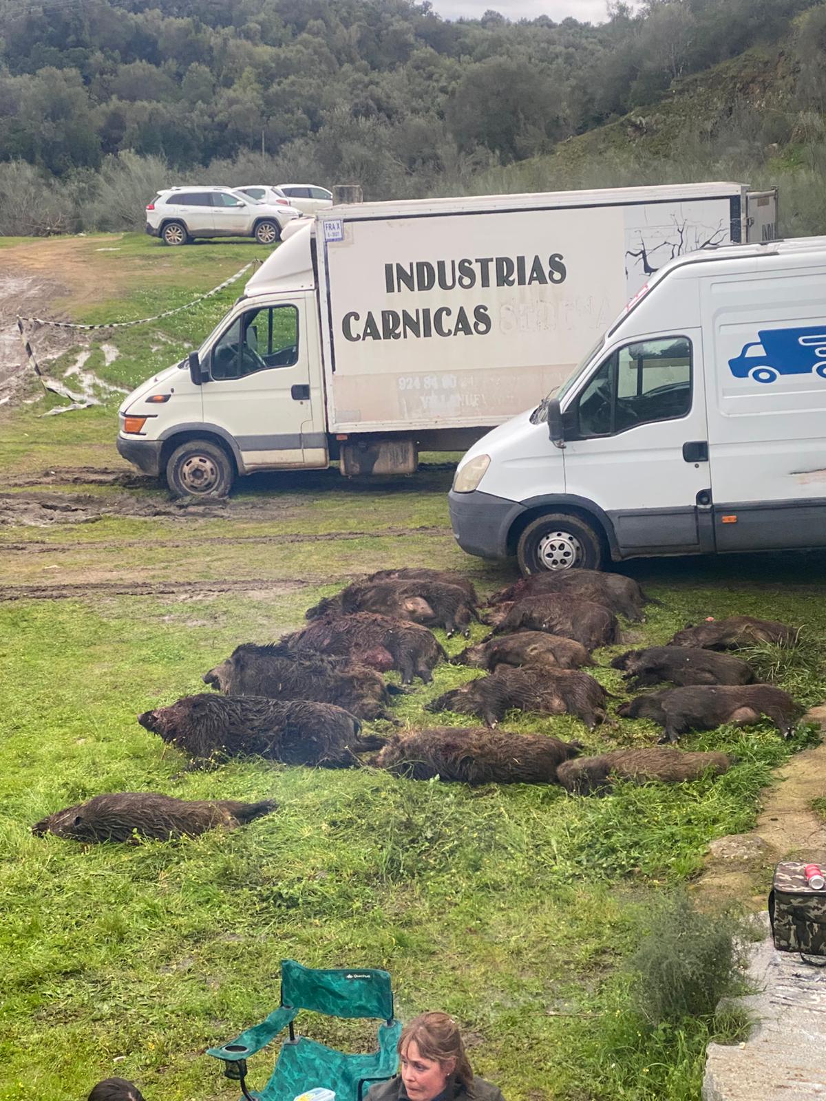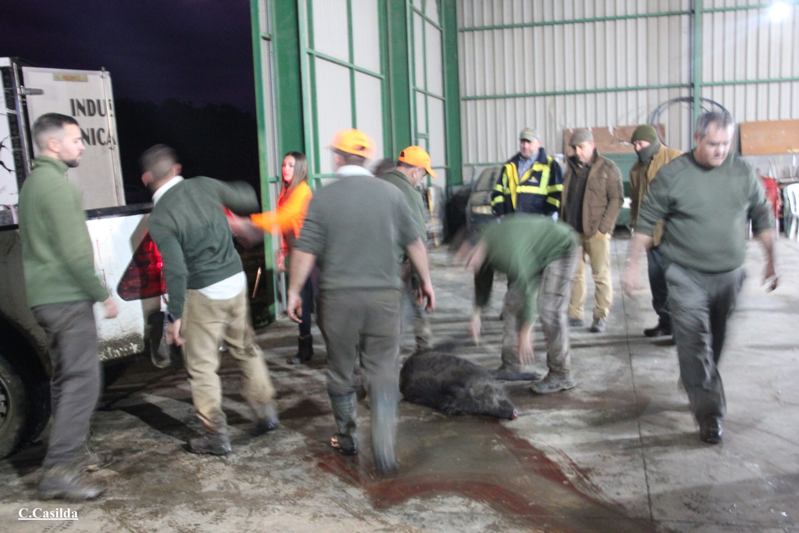 La comida, casi se podría decir que se convirtió en cena, con quince jabalíes en la puerta del primer “viaje” de reses que acudieron.