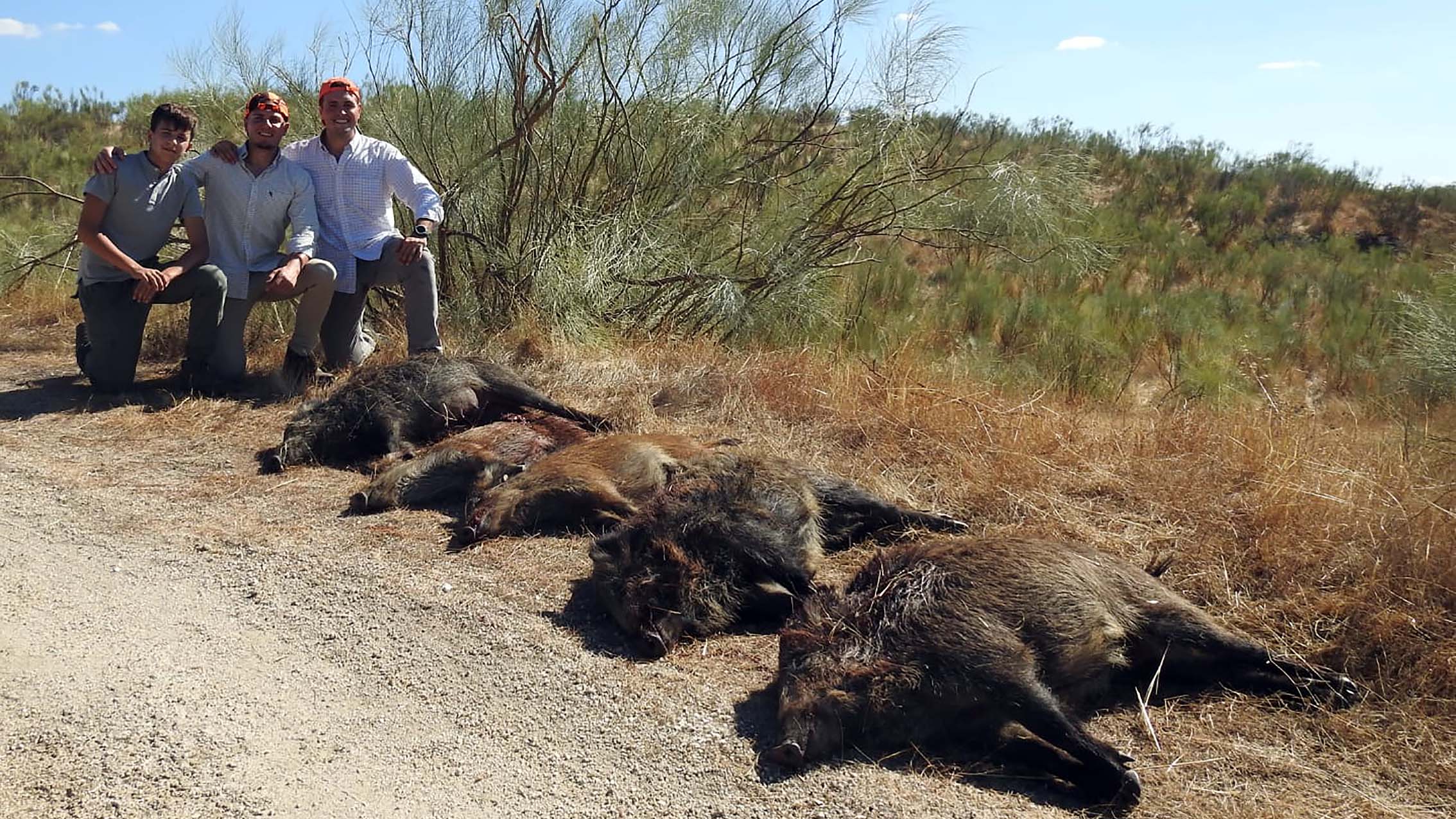 Volvimos a cazar de nuevo esta mancha a cochinos situada en el término municipal de Navas del Madroño, Cáceres, y a pesar del calor y la dificultad que esto supone para las rehalas, con 20 puestos y en abierto, se sacaron al plantel 42 guarros (2 navajeros).