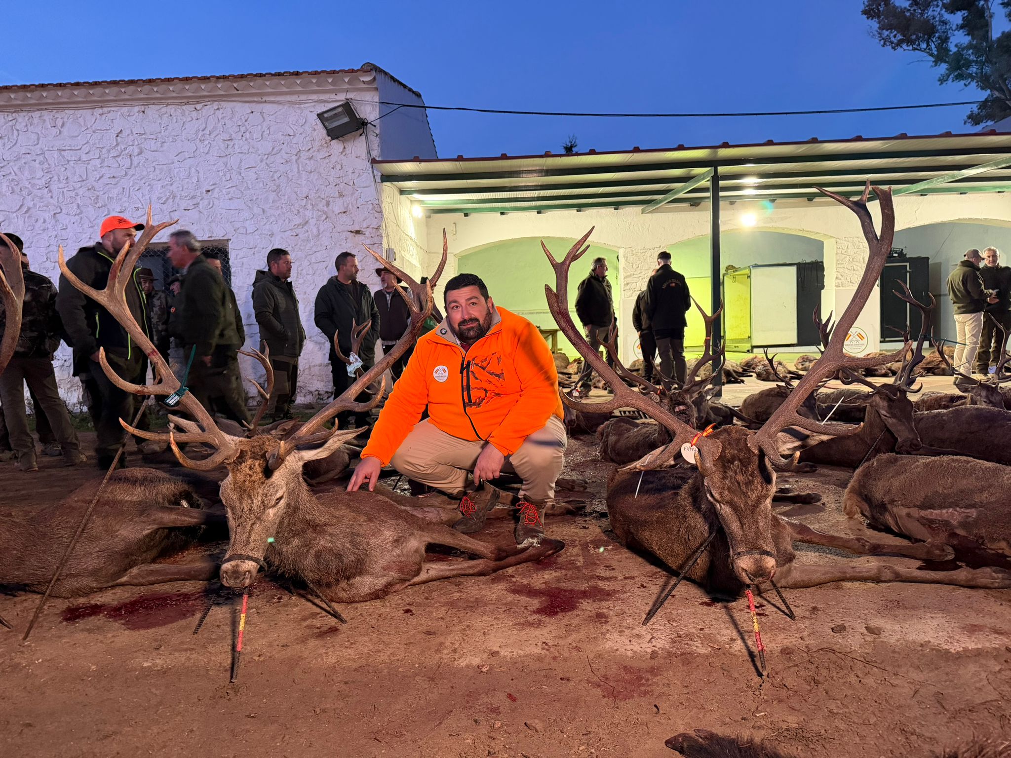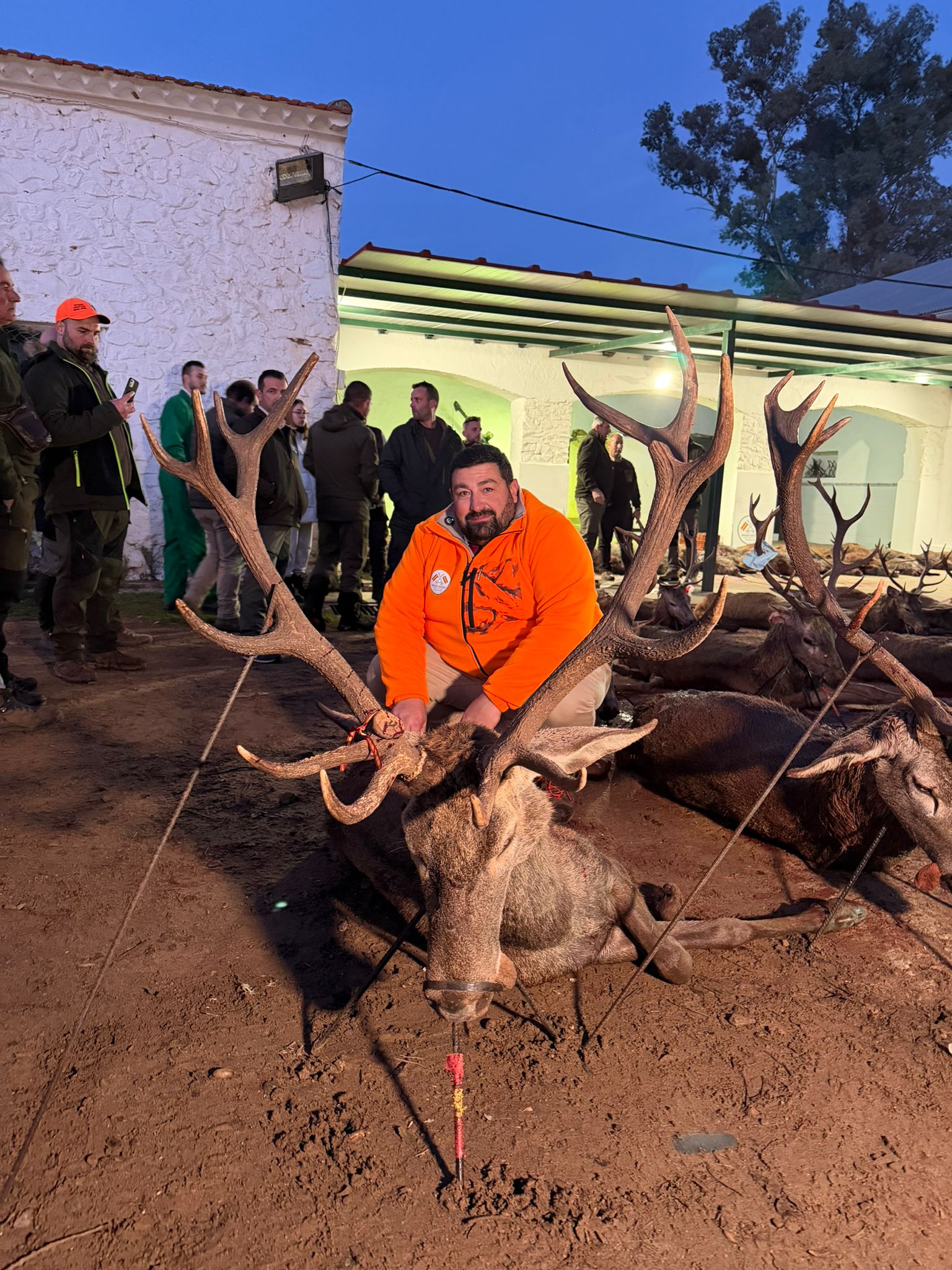 Y todo ello fue posible gracias al trato exquisito y la facilidad que nos brindó la propiedad de la finca con D. Octavio al frente, quien puso toda la carne en el asador para que todo se desarrollara a la perfección, con la máxima categoría y rozando la excelencia, así como al grandísimo trabajo que Javi y Carlos, los guardas de la finca, hicieron junto a Miguel Román y su equipo de campo para poner hasta el tapón de reses las 500 has de Las Tabernillas, mancha que hoy se cazaban dentro de este magnífico acotado castellano-manchego de 8.000 has. Un auténtico trabajo de ingeniería el que hicieron, porque montear 500 has dentro de una finca de 8.000, es prácticamente cazar en abierto. Y obtener el grandísimo resultado que se consiguió pone en valor dicho trabajo, lo que es digno de elogio. Por eso nuestras primeras palabras de agradecimiento no pueden ser para otros que no sean la propiedad y la guardería, pues ellos fueron los grandes artífices de este magnífico día de caza, habiéndose cumplido así el sueño de esta organización, y el de los 32 monteros que cerraron la mancha. ¡GRACIAS D. Octavio, jamás encontramos tanta categoría y un trato tan exquisito hacia nosotros y hacia nuestros monteros, y GRACIAS Javi y Carlos, porque habéis demostrado la profesionalidad y el saber que atesoráis! ¡Ha sido un placer y un honor haber podido montear en vuestra casa y con vosotros!