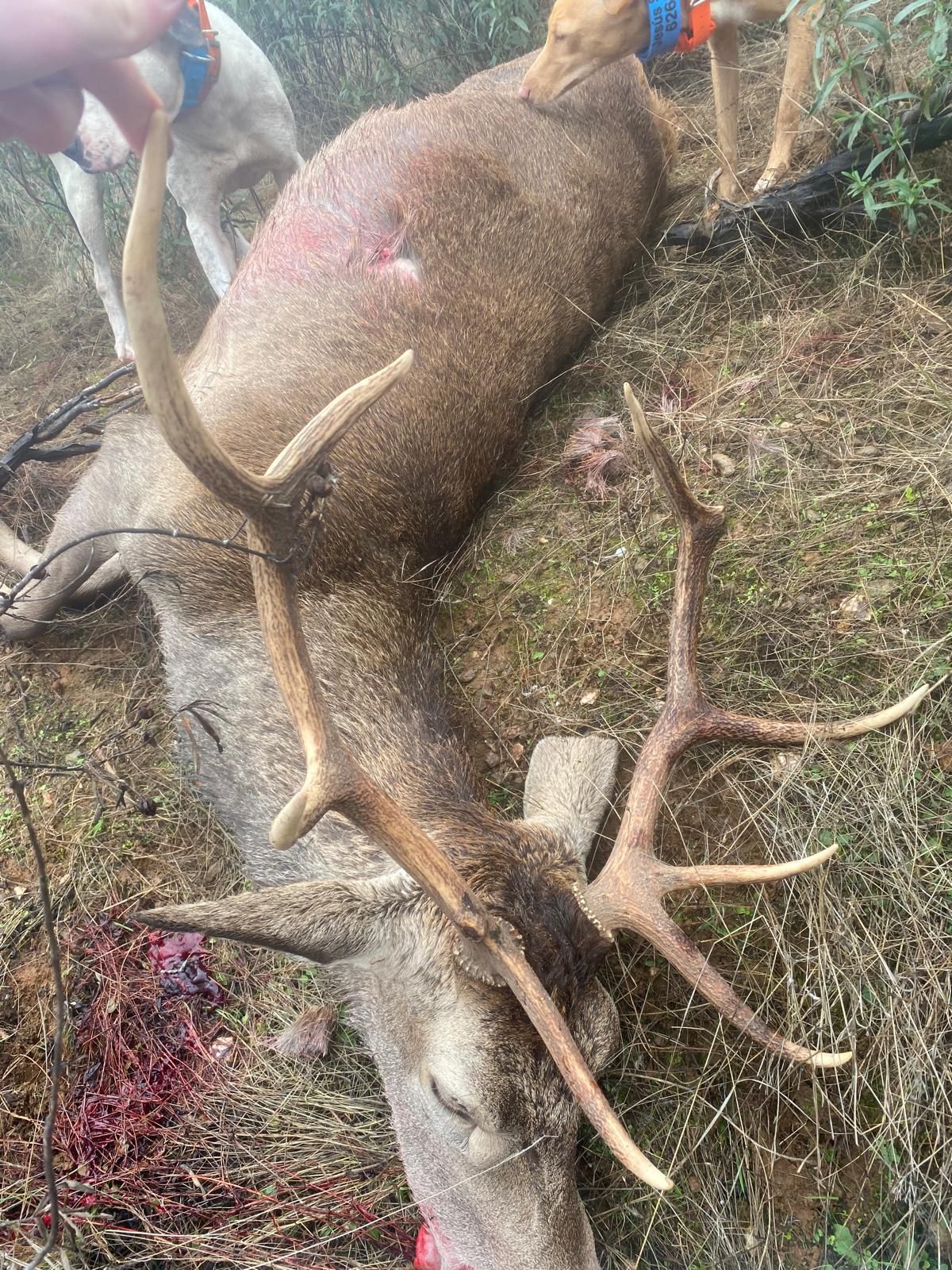 A las 11:30h soltábamos las rehalas y empezó la magia. Infinidad de disparos y carreras de venados por todos los puestos. ¡Una locura!