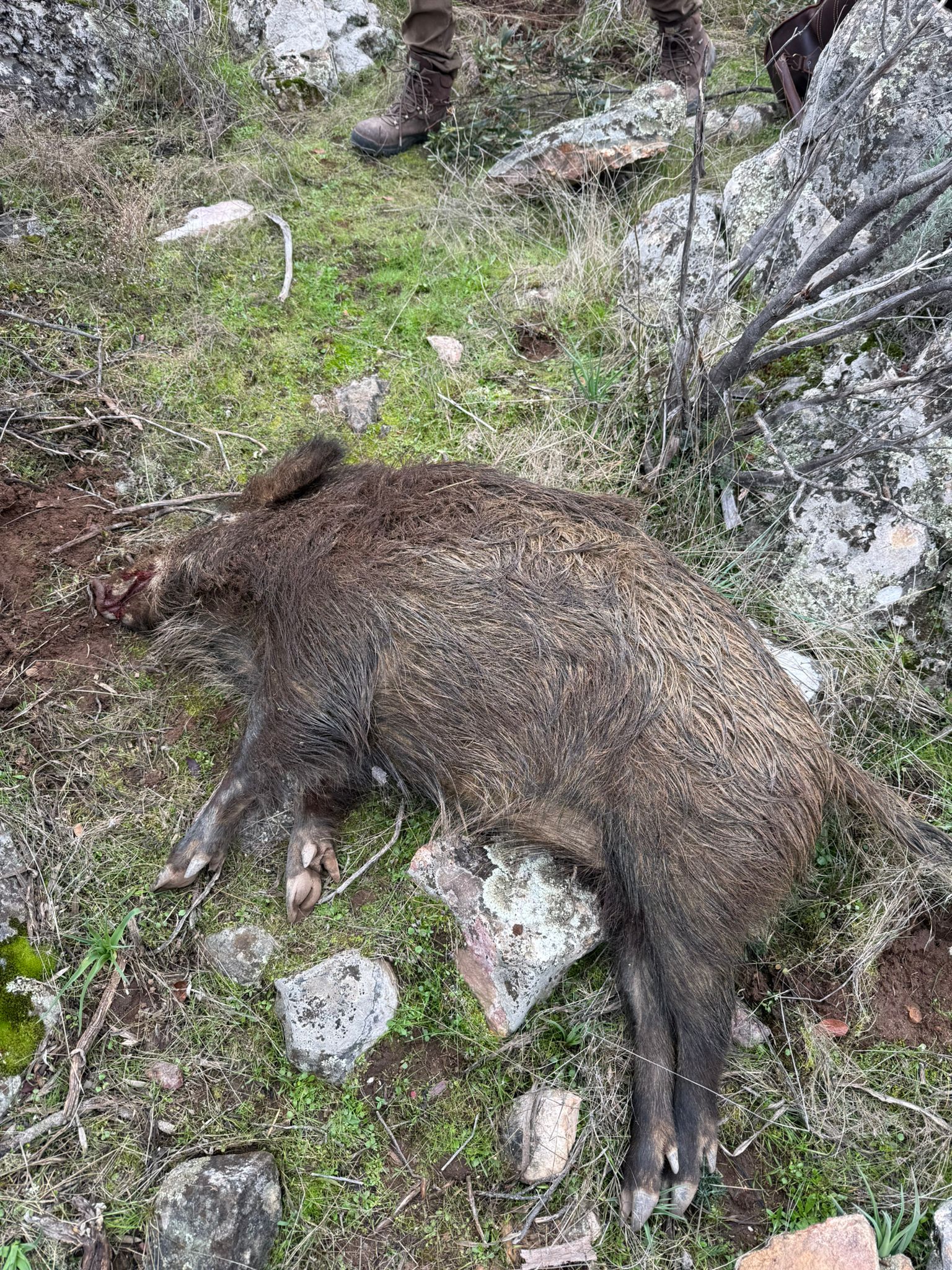 Finalizaba la jornada con más de 200 detonaciones y un plantel de 15 jabalíes, 1 venado y 22 hembras, aunque se echó en falta algunos venados más que probablemente, después del frío de estos últimos días, se cambiaron a la solana.