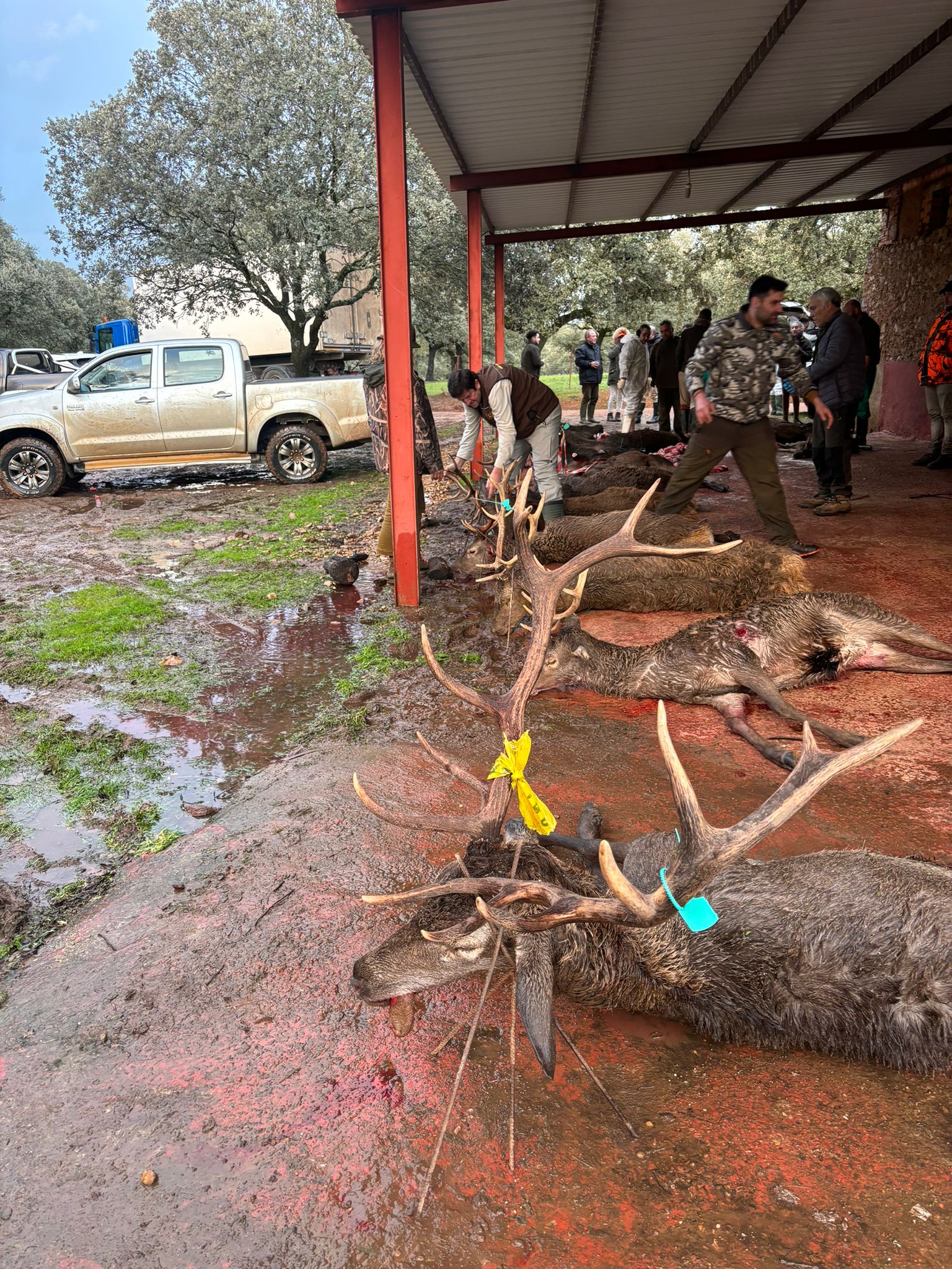 Después de un día de lucha continua contra las inclemencias meteorológicas y contra las reses montunas, que aprovecharon el día para ponérnoslo aún más difícil, obtuvimos un resultado de 18 cochinos (varios navajeros),17 Venados ( 2 destacados) y un puñado de hembras de gestión.