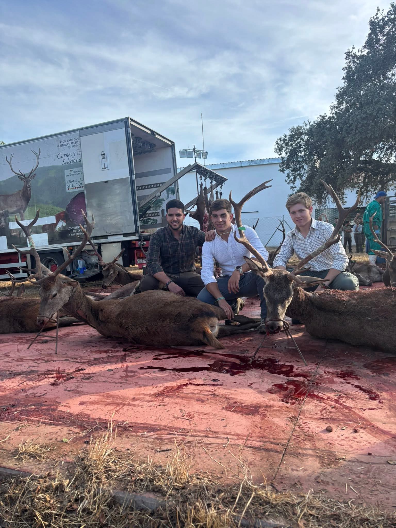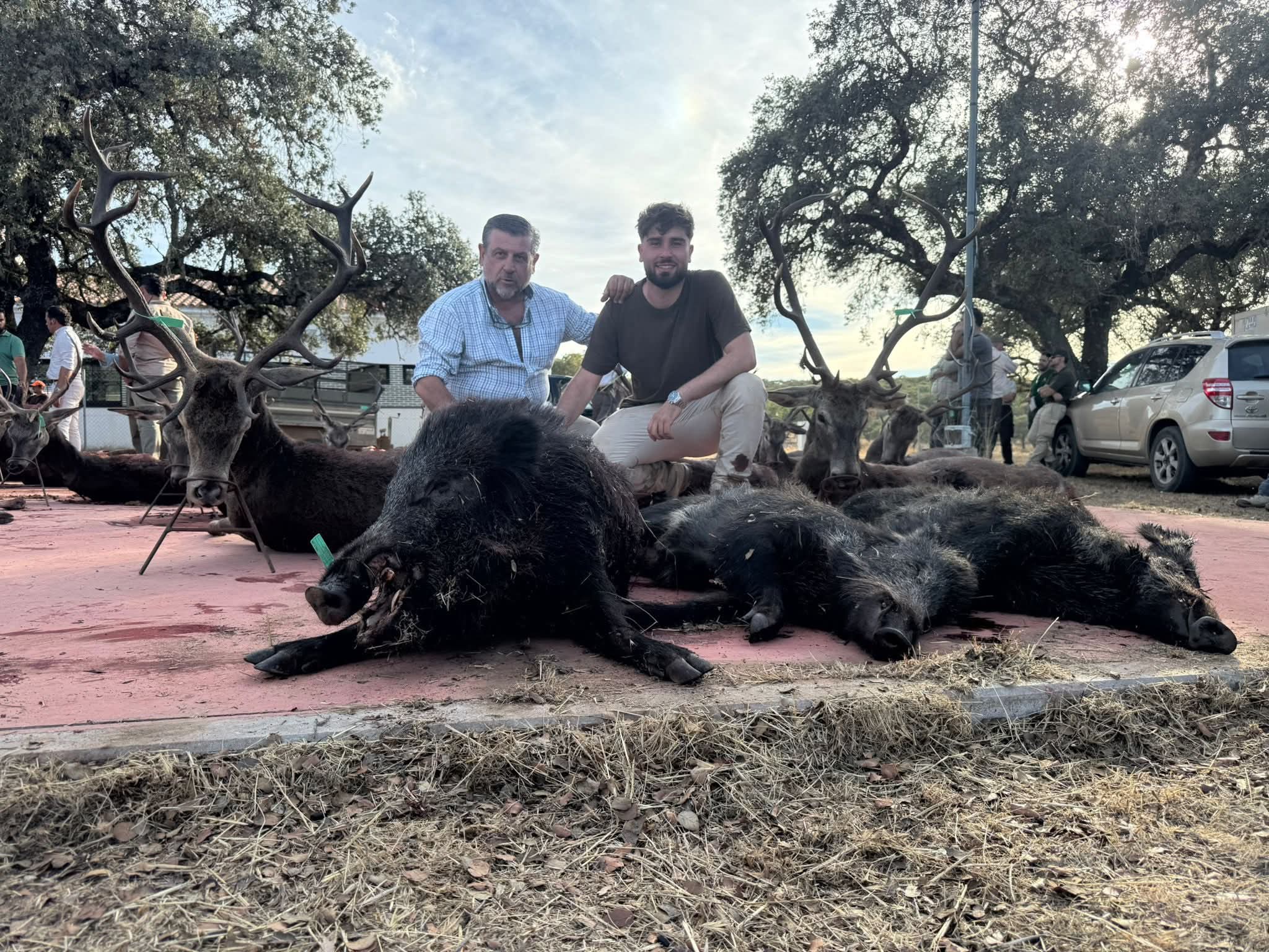 Al final de la jornada, tras un día de intenso tiroteo, se formó un plantel de 46 venados, 12 jabalíes y medio centenar de ciervas, destacando algunos trofeos bonitos de montería en la primera fila del plantel.