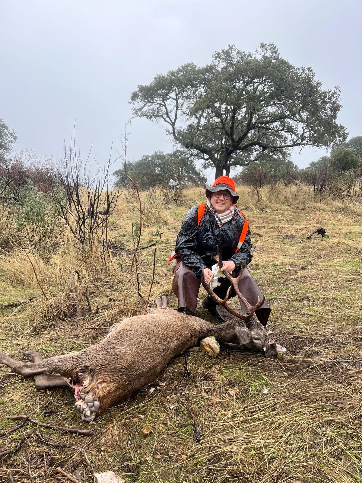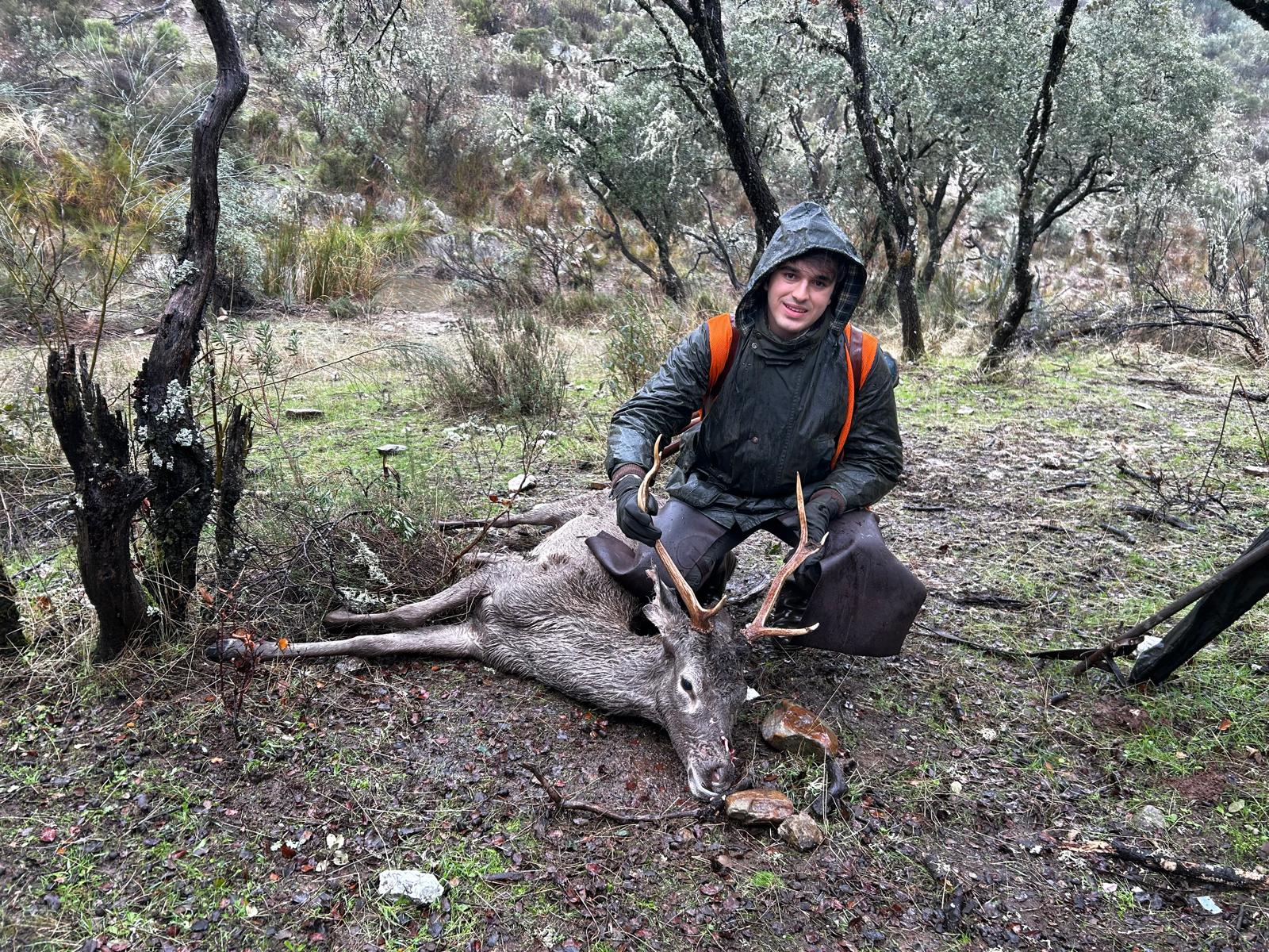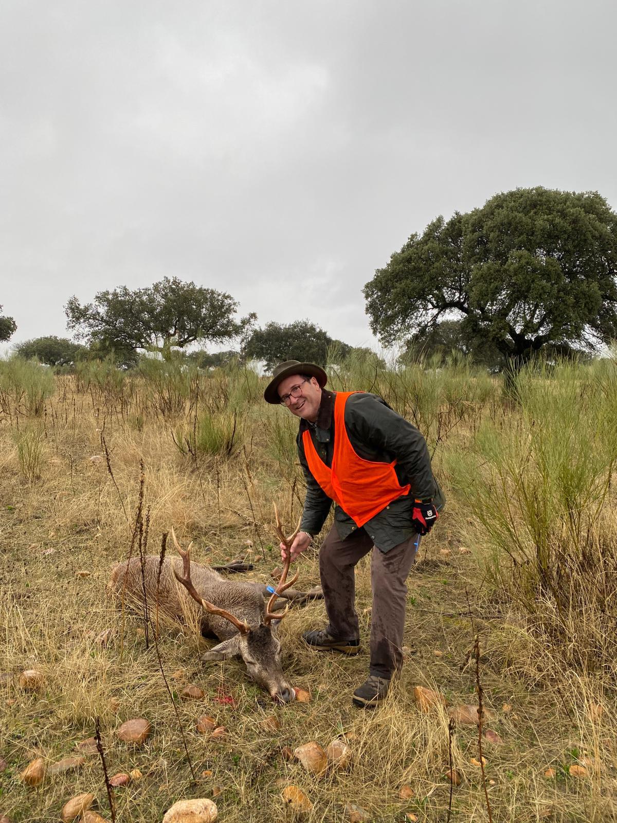 En primer lugar por el excelente trabajo de propiedad, guardería y organización en la preparación de la mancha para devolverla al estatus y al lugar que se merece, y que no es otro que el de posicionarse como una de las tres mejores monterías de venados en abierto de España. Y aquí tenemos que darle la enhorabuena a Álvaro y familia, propietarios de la finca, por el cariño y la pasión con el que preparan la montería de su casa, a Lolo el guarda y Marisol, su mujer, por dejarse el alma cuidando la mancha 365 días al año, y a Javier Rodríguez Torrecilla y Jorge Cardador (Pelillo SC), por apostar fuerte y en firme por esta mancha y darla en la fecha indicada a pesar de las amenazantes lluvias que daban para ese día en gran parte de España y que hicieron suspender multitud de monterías.