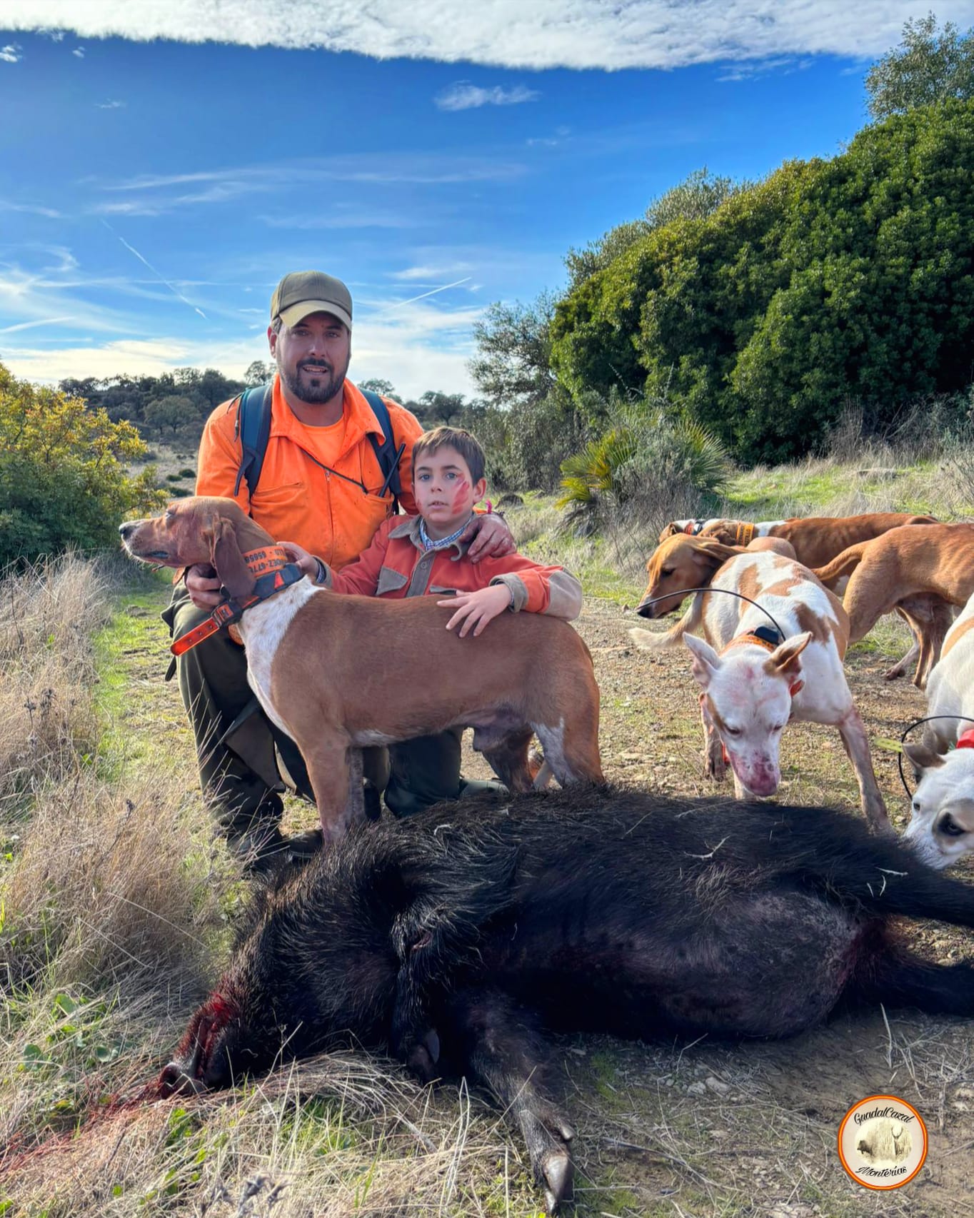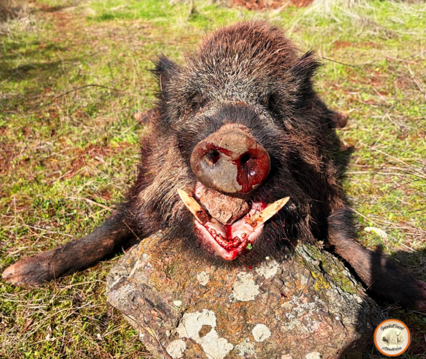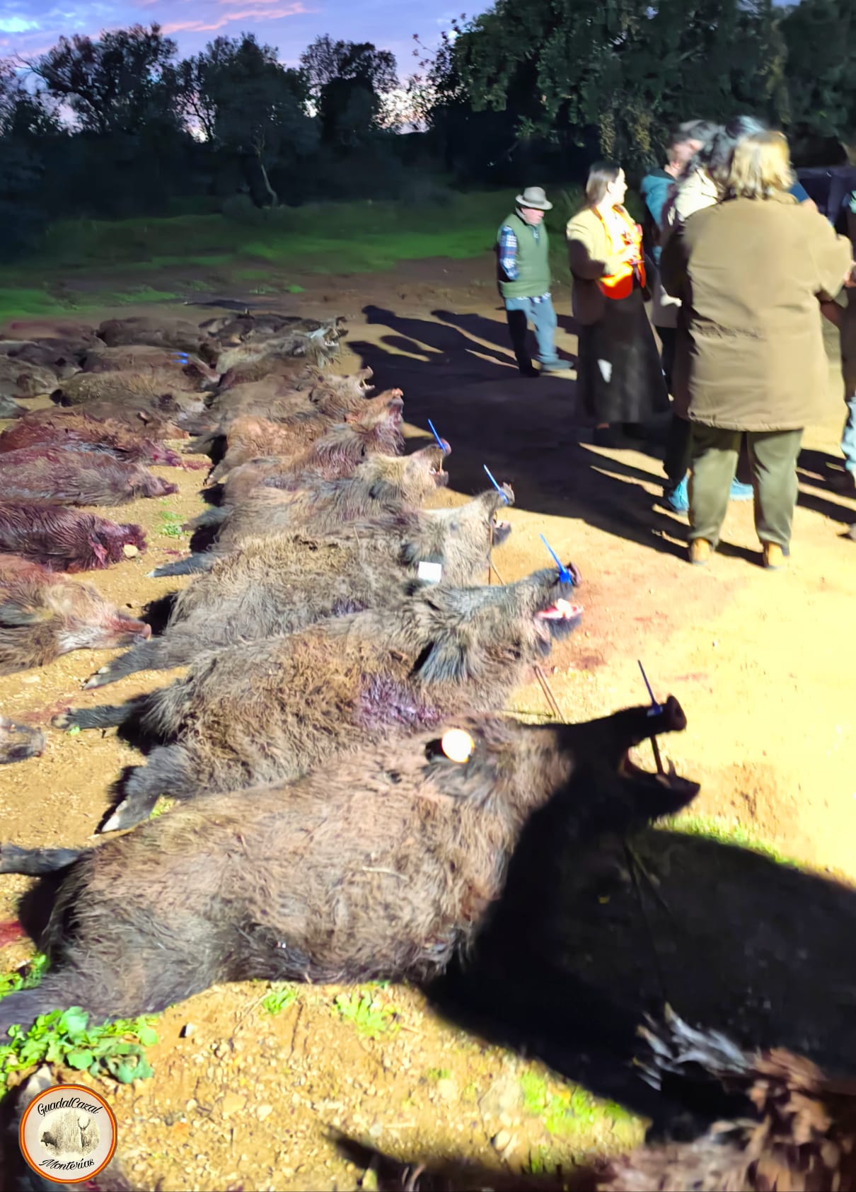 Y entre tanto, monteros que a la hora de estar puestos ya tenían el cupo de cochinos hecho, como Nuria y Pepe, que a las 12:30h ya lo tenían cubierto, abatiendo un bonito navajero y dos enormes cochinas, sorprendiéndolos por su tamaño, y viendo un sinfín de cochinos pasar luego por la postura.