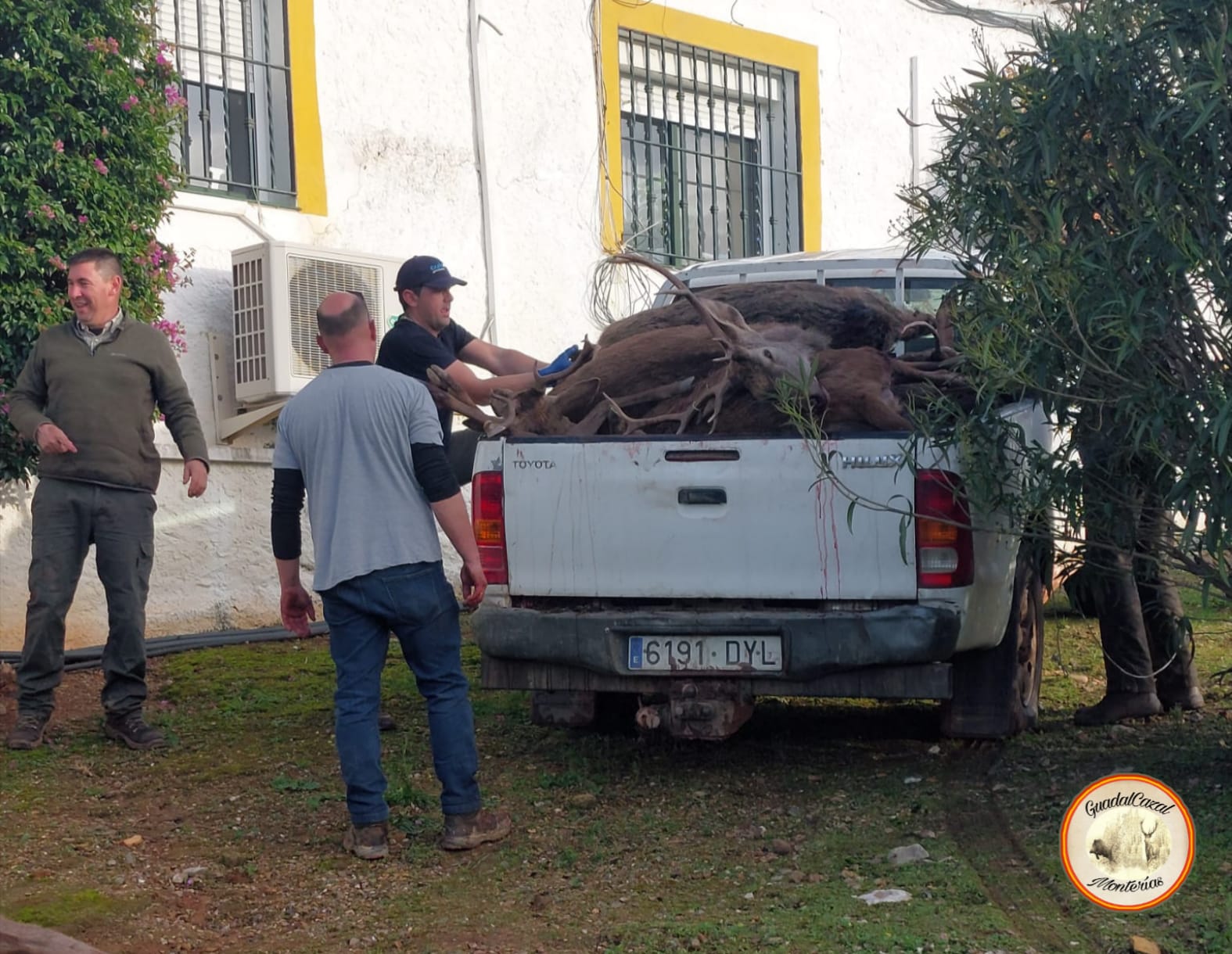 Mientras tanto, el equipo de Guadalcazal se afanaba duramente en la recogida de reses para que estuviesen rápido en el plantel. Y es que olía a montería grande, ¡pero grande de verdad!