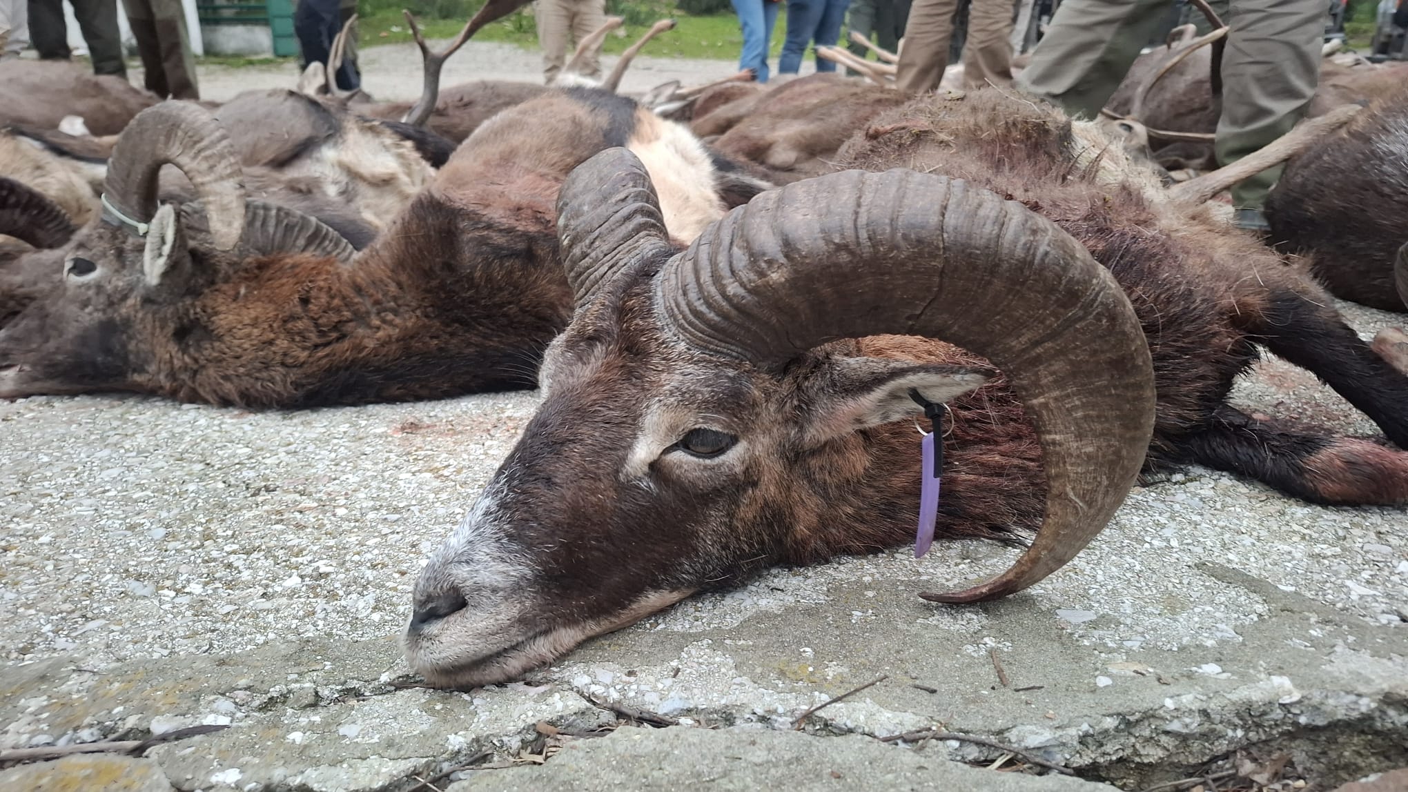 Y como suele ser habitual en la caza, y más en esta sociedad, que no destaca por su buena puntería sino por su buena gente, no todos los lances fueron certeros. Es más, se podía haber alcanzado las 200 reses abatidas, pero el plantel se quedó en la mitad, que no es poco, pues a la junta de carnes llegaron 101 animales, con 17 muflones, 10 jabalíes, 8 venados, 6 gamos y 60 hembras, destacando un par de navajeros, un bonito venado y varios muflones bonitos de montería.