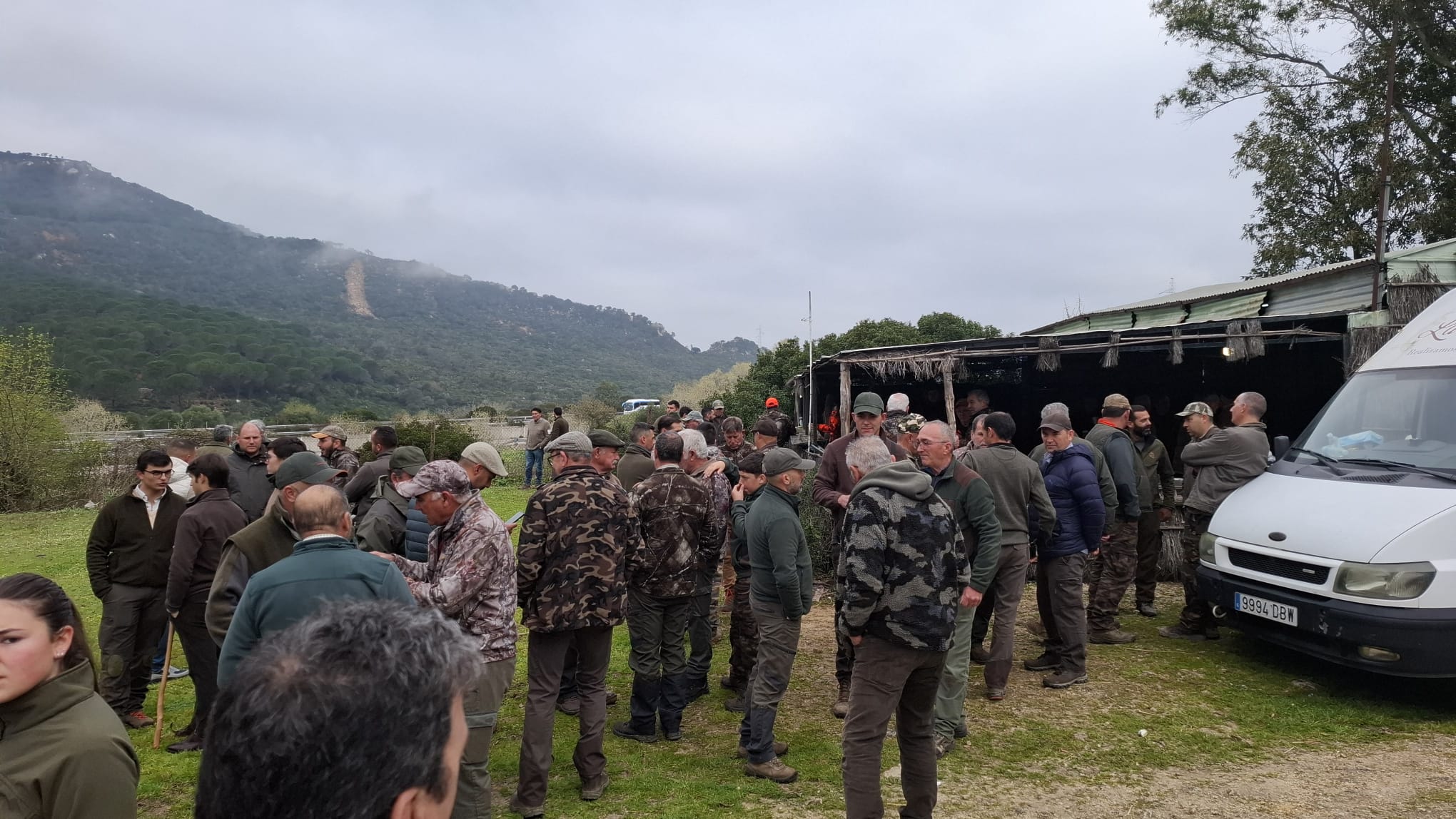 Con el sorteo de los 90 puestos ya realizado, el sábado 28 de febrero amanecimos en Los Barrios con un magnífico día. Despejado, sin viento, y con buena temperatura. Algo inusual en la zona en esta época del año. Cierto es que en las partes altas de la finca la niebla hizo acto de presencia en los primeros compases de la montería, pero pronto se disipó dejando un día extraordinario para el monteo, solo molestado por algunas rachas de viento puntuales por aquellos enclaves altos linderos con La Almoraima.