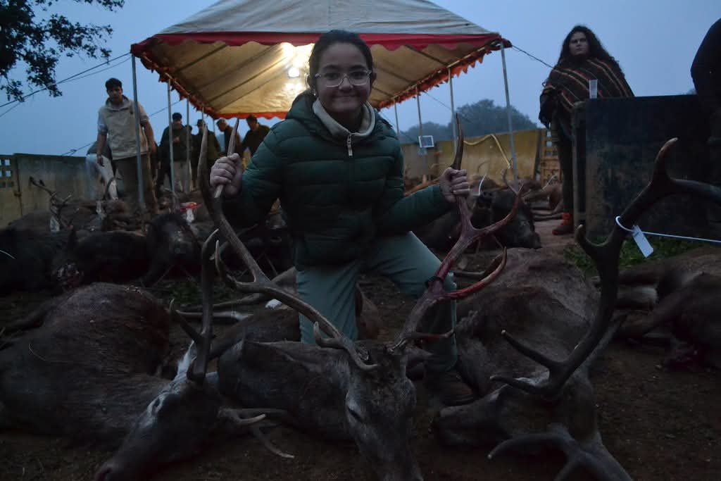 Finalizada la jornada, los monteros disfrutaron de una buena sobremesa a la espera del plantel final del día, el cual fue de un total de 43 venados (con varios destacables) y 52 cochinos, con varios navajeros entre ellos.