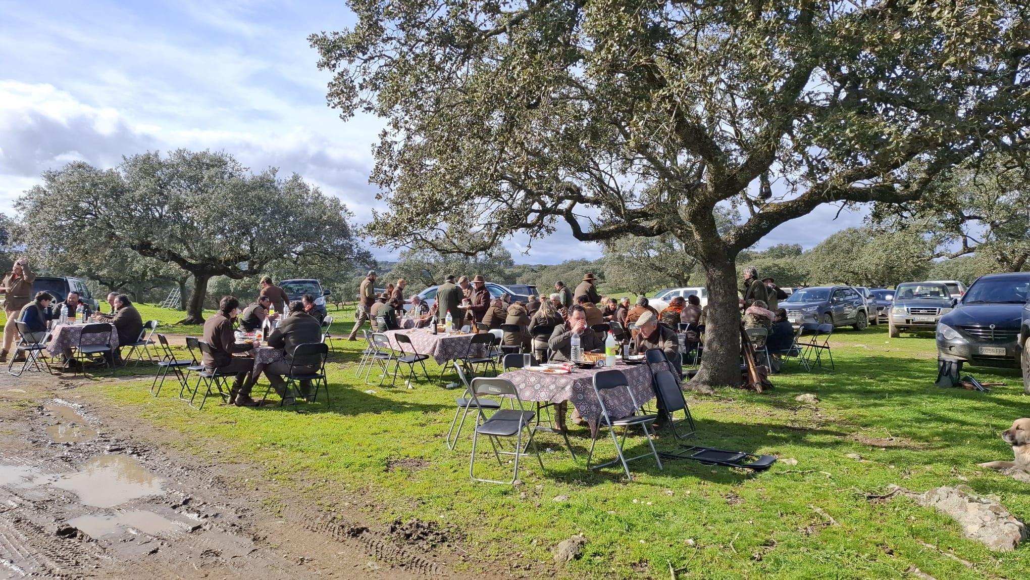 Llegadas las tres de la tarde se ordenó recoger y los monteros se trasladaron a la comida mientras que la organización se empleaba a fondo para recoger los 23 venado, 31 jabalíes y un puñado de ciervas que se abatieron durante la montería.