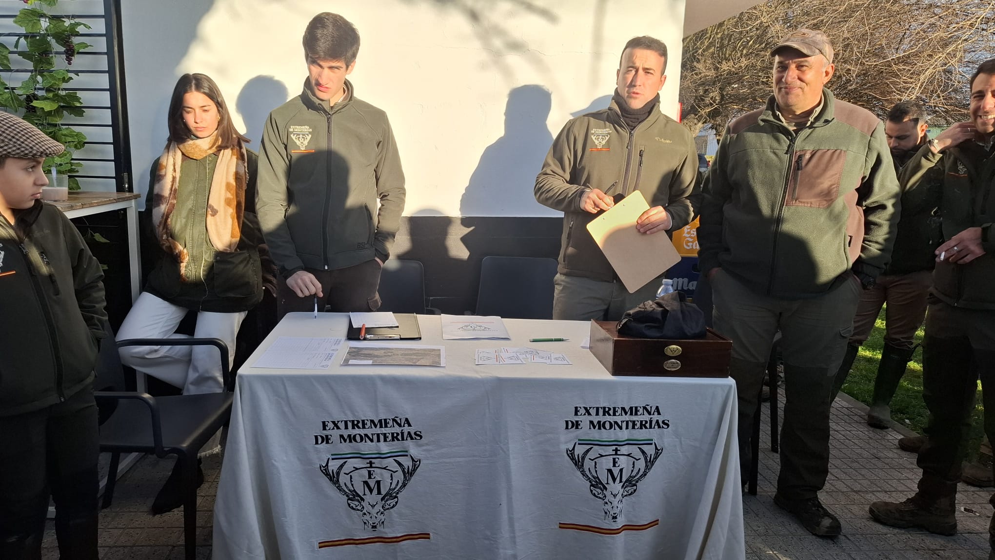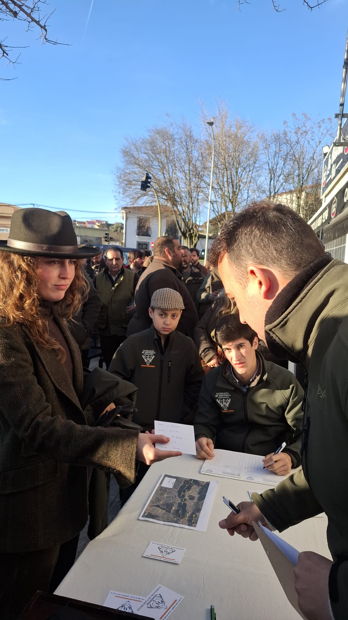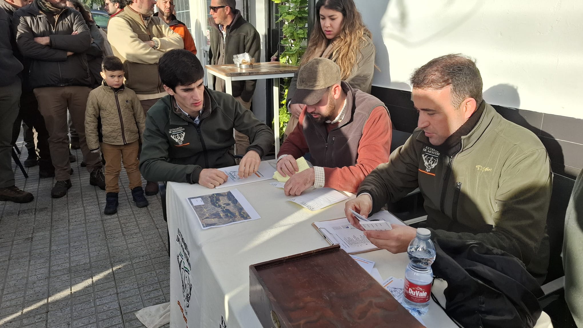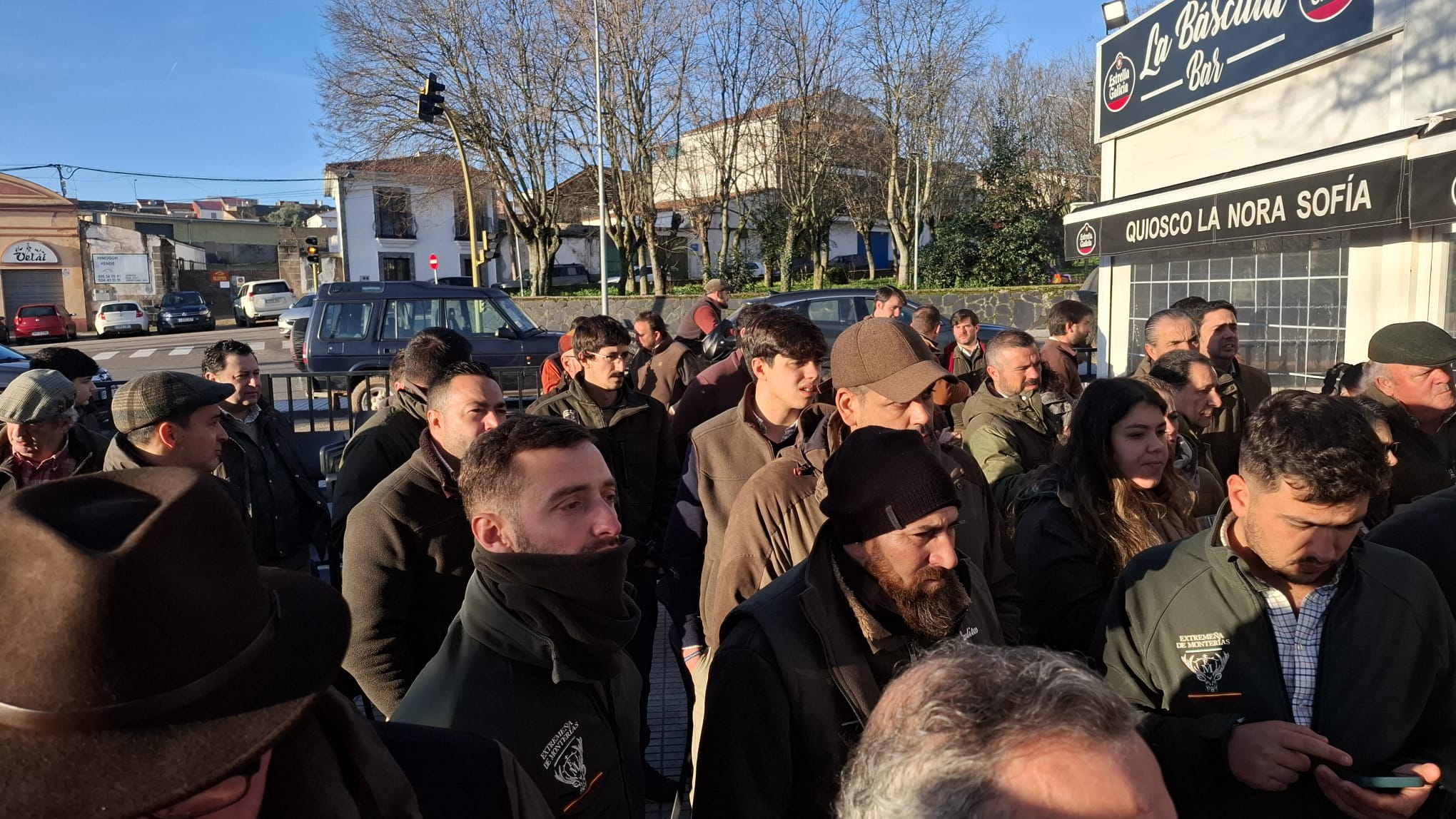 Convocaban Enrique y Leoncio a los 48 monteros que cubrirían la mancha a cazar a las 8:30h de la mañana en el bar La Báscula de esta localidad pacense, para desayunar y realizar el sorteo de puestos, que en esta ocasión se volvió a realizar por armadas para comenzar a cerrar la mancha lo antes posible.