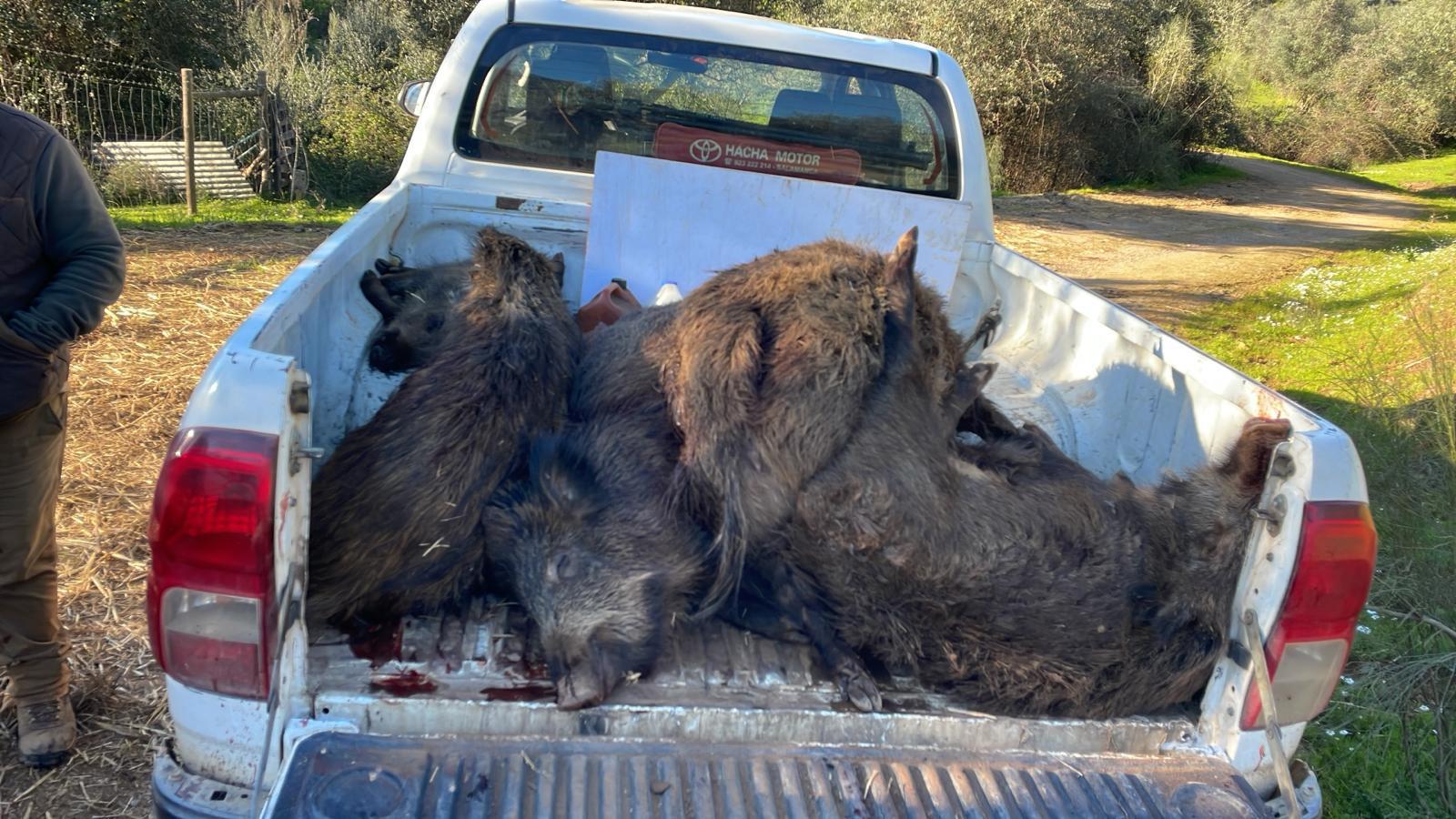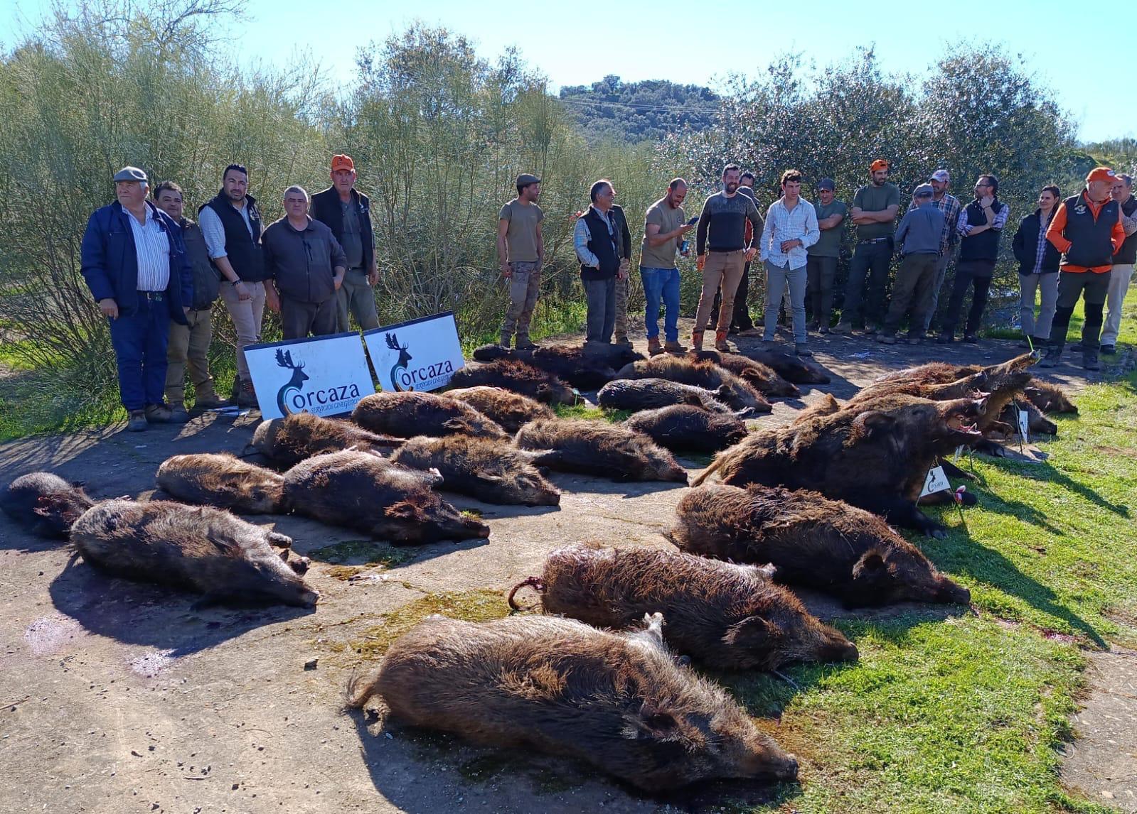 Nos encontramos con una mancha muy dura, con barrancos enormes, que puso a prueba tanto a monteros como a rehalas. Aun así, la finca respondió como se esperaba, con abundancia de cochinos y lances emocionantes. Se lograron destacar 3 navajeros y un gran plantel final de 45 cochinos para 30 puestos, quedando constancia de que quedaron más cochinos dentro debido a lo complicado del terreno, que hacía imposible sacarlas todas al mismo tiempo.