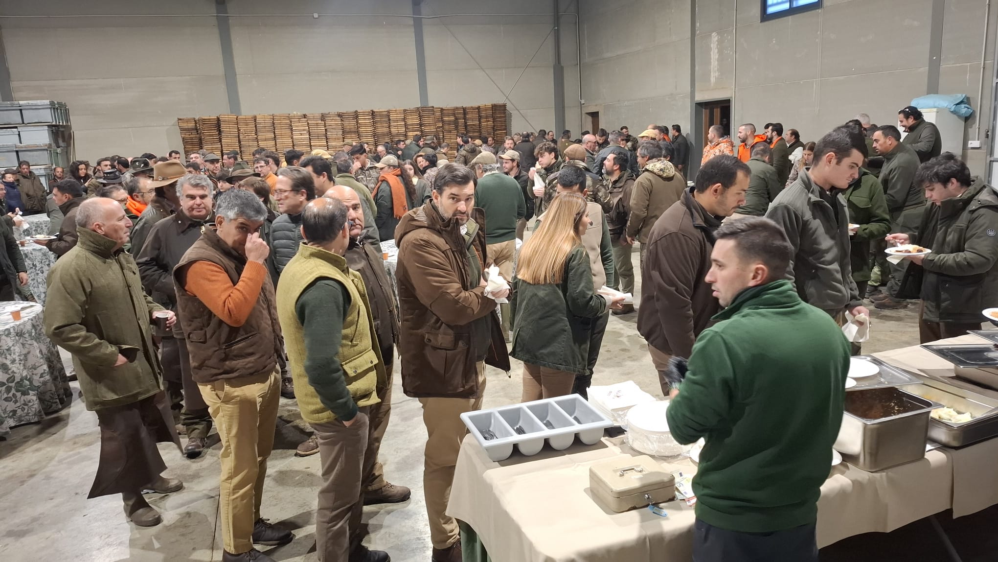 Buen ambiente en el multitudinario desayuno, buena organización y ágil sorteo por armadas de los 88 puestos que cubrían El Frontón y Chiquero, tras escuchar atentamente las palabras de bienvenida del organizador y el consabido recuerdo de las normas de seguridad de la montería.