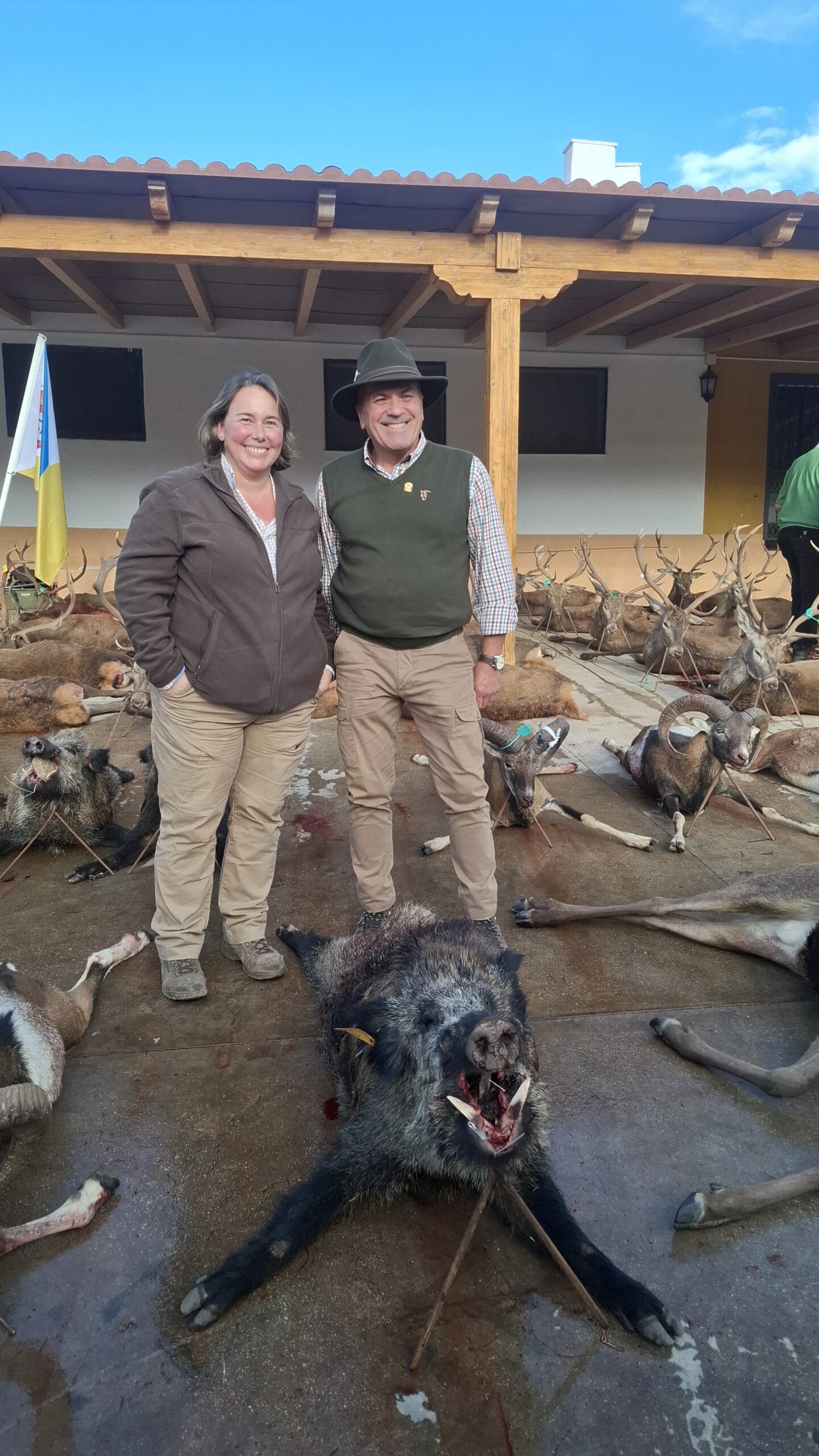 Félix Sánchez se hizo con el mejor jabalí de la jornada, que habrá que ver lo que tiene por dentro porque puede meterse en metal, Jaime abatió el venado más destacado de la jornada y Juan Manuel se hizo con un muflón de auténtica categoría, que se meterá en metal con total seguridad. En total se cobraron 52 venados, con una calidad media muy bonita para este tipo de monterías, 10 gamos, con alguno que puede meterse en metal y varios bonitos, 10 muflones, dos de ellos destacables y uno pendiente de homologación, 27 cochinos, con 5 navajeros, uno posible medalla, y 51 ciervas.