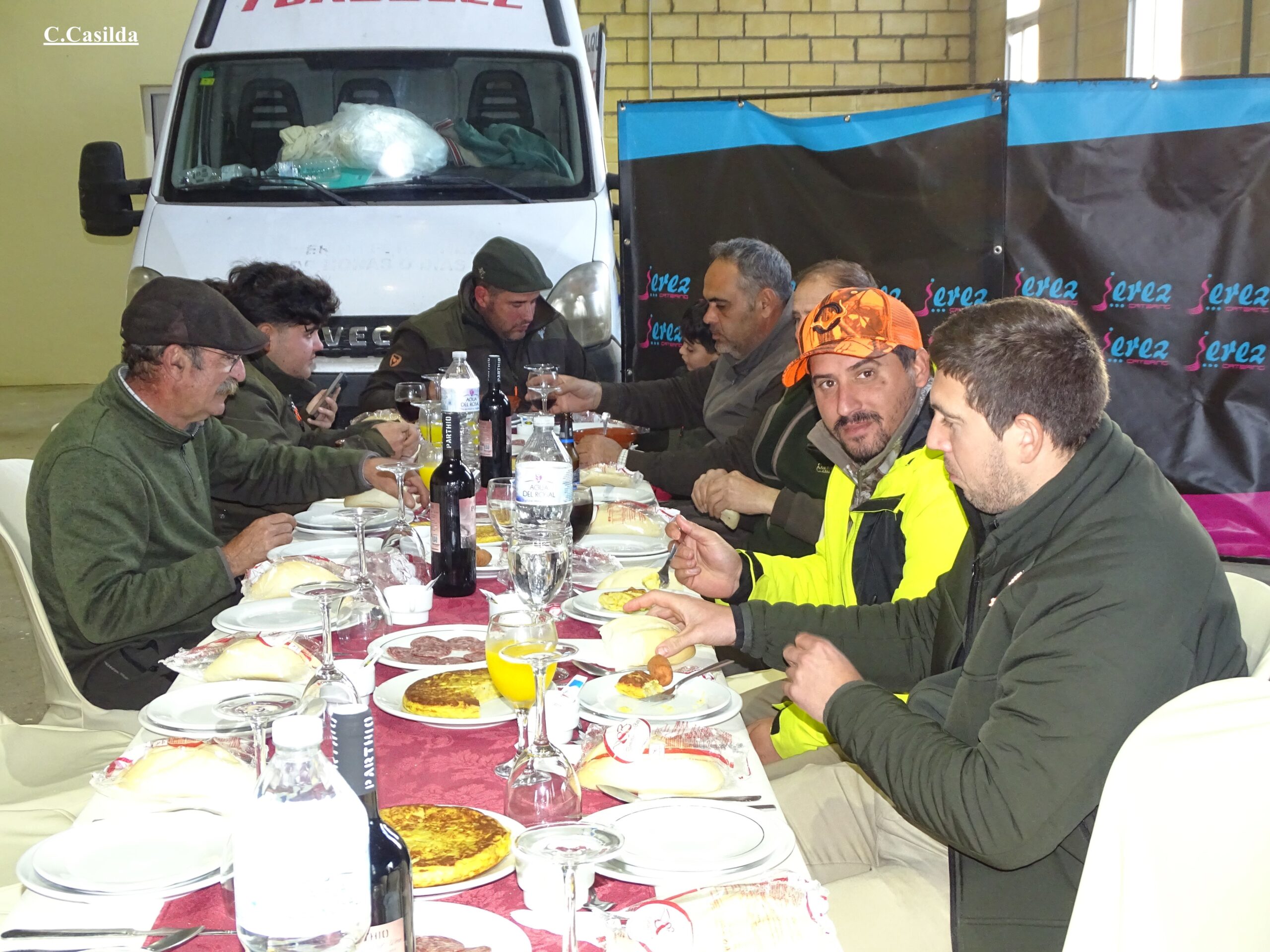 Con la llegada de las rehalas a los remolques se levantaba a los monteros de sus posturas y volvían al punto de encuentro para disfrutar de una buena comida mientras la organización comenzaba con las tareas de recogida de las reses.