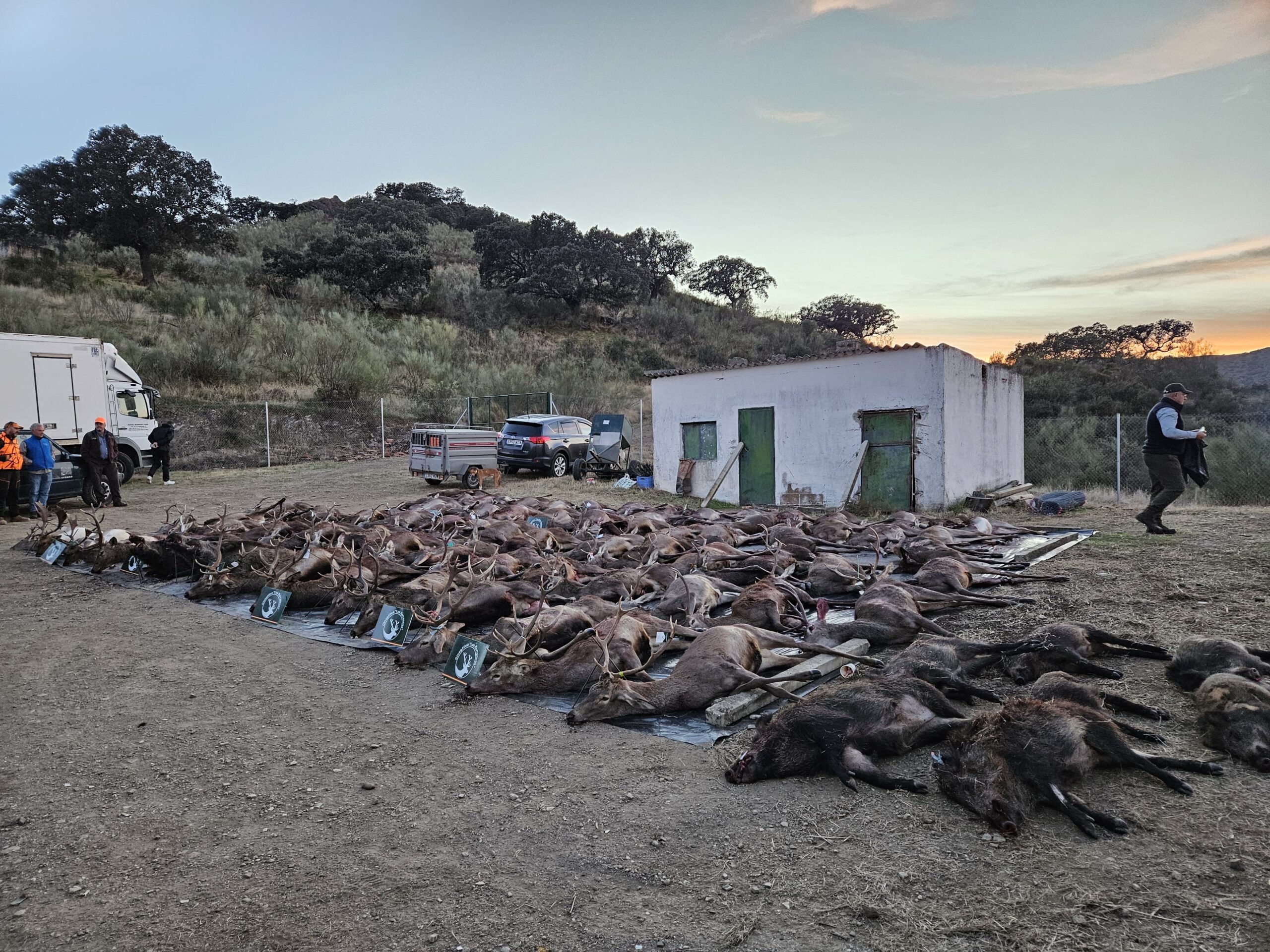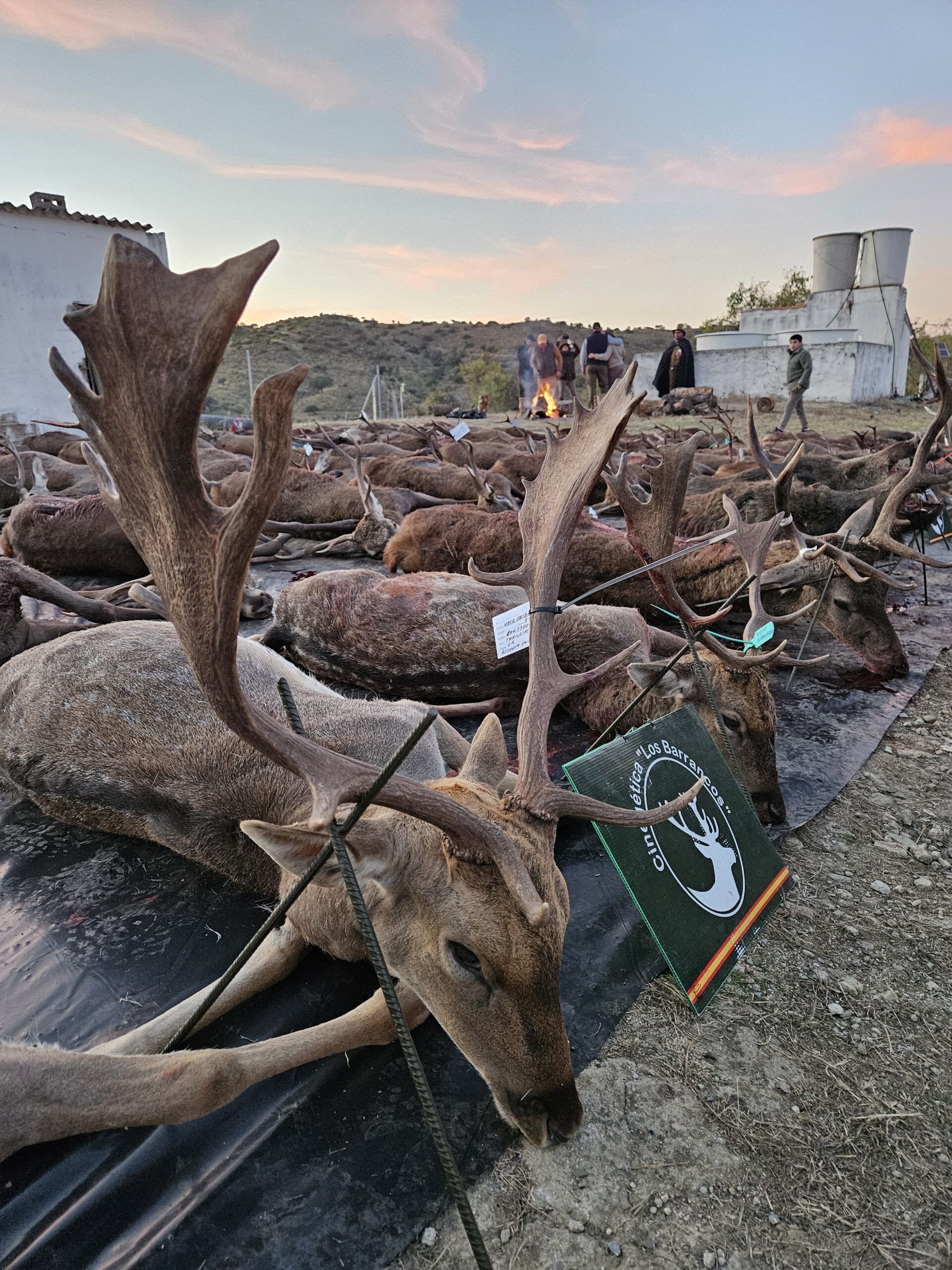 Y con estos antecedentes comenzó una jornada en la que los lances al cervuno no se hicieron esperar, comenzando a rodar por tierra las primeras reses por los cierres incluso antes de soltar colleras. Luego, tras una primera hora de monteo con buen ritmo de lances, empezó a menguar el ojeo, pues los jabalíes no dieron el juego esperado y el cervuno había comparecido en menor cantidad de la esperada, quedándose corto el resultado para las previsiones que todos teníamos.