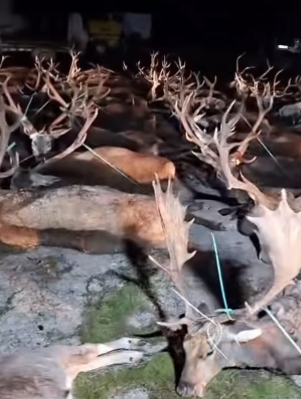 Al caer la tarde, con el sol rindiéndose tras los cerros, el plantel hablaba por sí solo: 56 venados, 41 jabalíes, 3 gamos y 2 muflones daban fe de un gran día de montería.