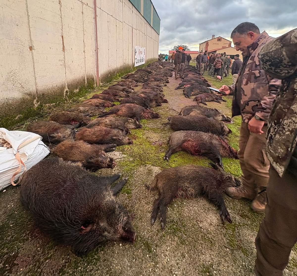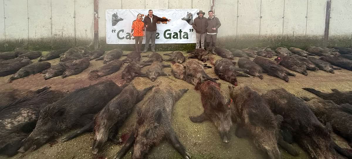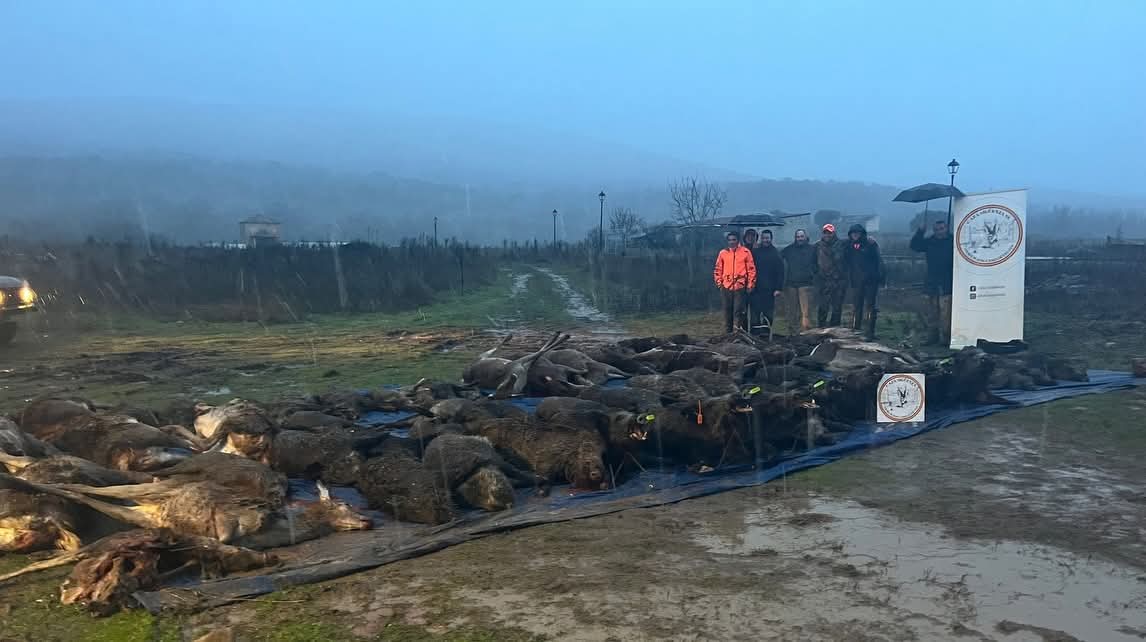 Con la suelta de las rehalas, la caza comenzó a moverse con fuerza: tiroteo constante, lances emocionantes y un plantel de 52 jabalíes y 24 hembras, con numerosos navajeros, que puso el broche a una jornada intensa y muy trabajada.