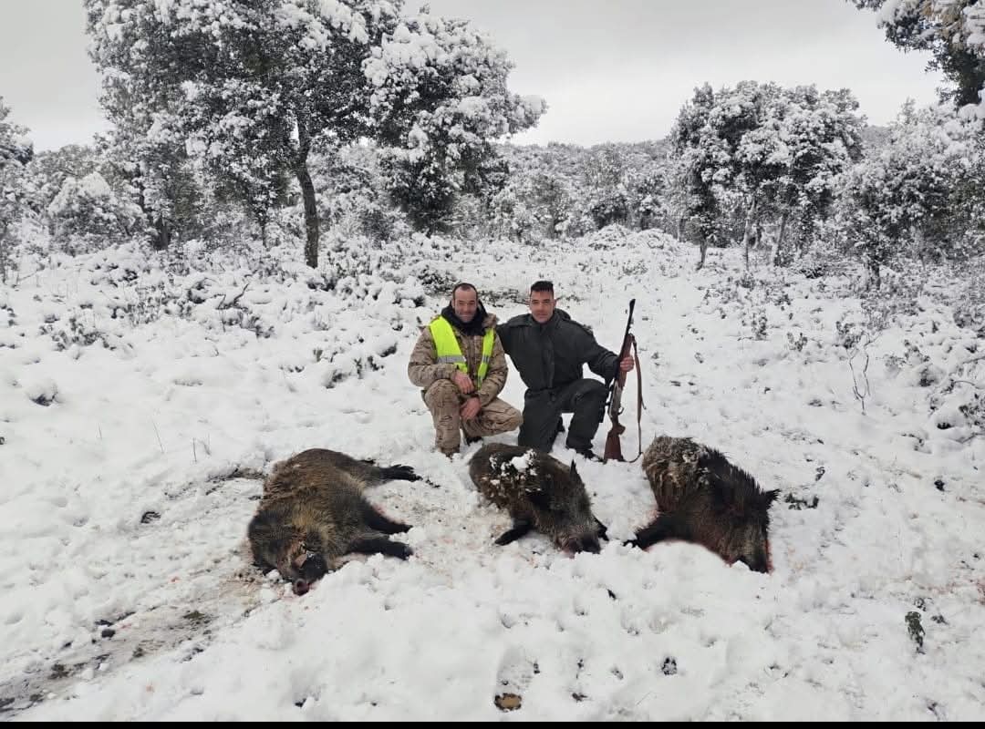 Mañana de intenso tiroteo sobre un cazadero cubierto de nieve que no impidió que organización y monteros triunfaran y dejaran el pabellón bien alto, tal y como viene siendo habitual en esta prestigiosa finca. Enhorabuena y a por la siguiente.