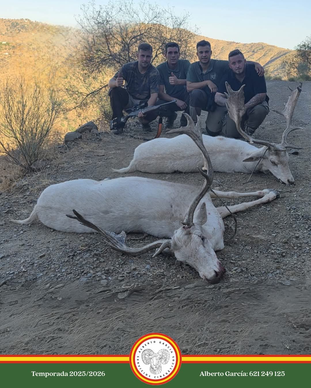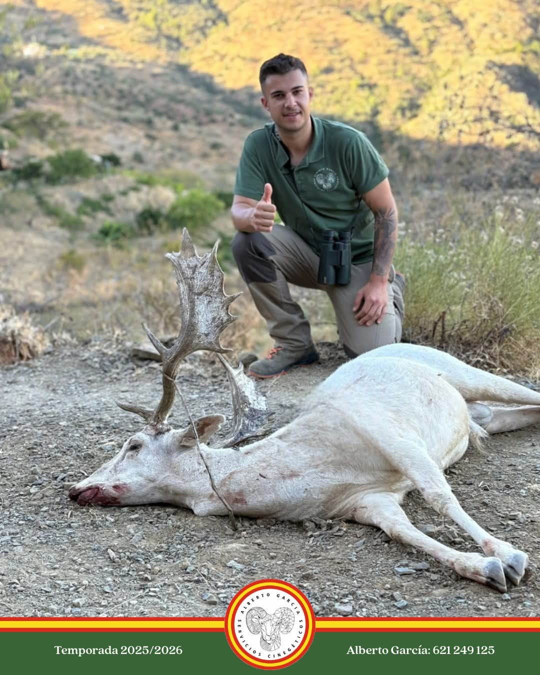 Días antes de acudir a la GALA FEROX-TODOMONTERÍA para recoger nada menos que 4 PREMIOS PODENQUERO por su brillante temporada de monterías 2024-2025, el organizador granadino se fue de rececho para abatir dos singulares trofeos de gamo albinos, un variedad muy particular que cada vez suscita más interés entre los cazadores por lo raro y exótico del trofeo.
