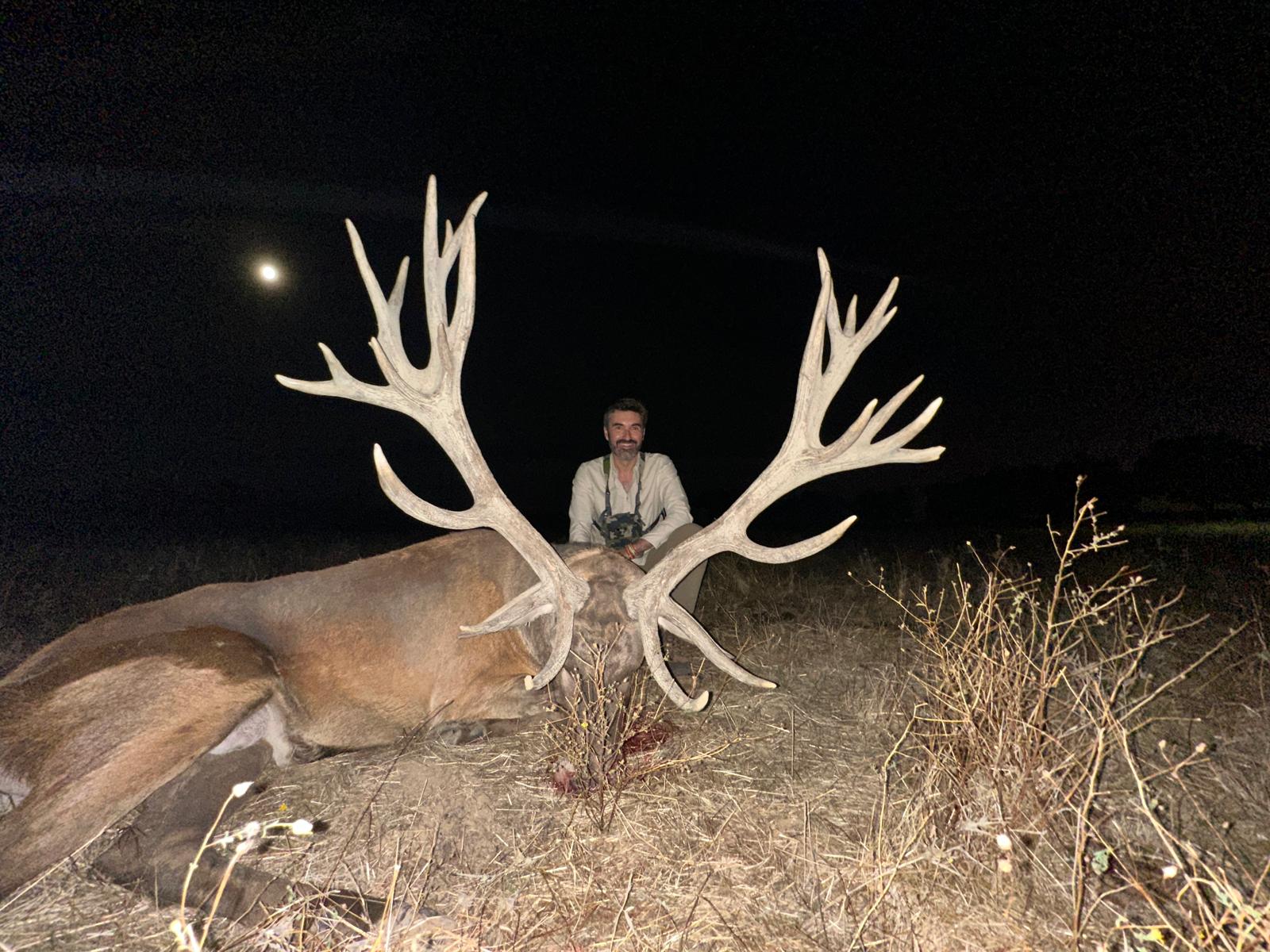 Al final, entre dos luces, y cuando ya daban por perdido tan soberbio animal, dieron con él y sin pensarlo, se la jugó el cazador con un precipitado lance en la lejanía, pudiendo abatirlo de certero disparo.