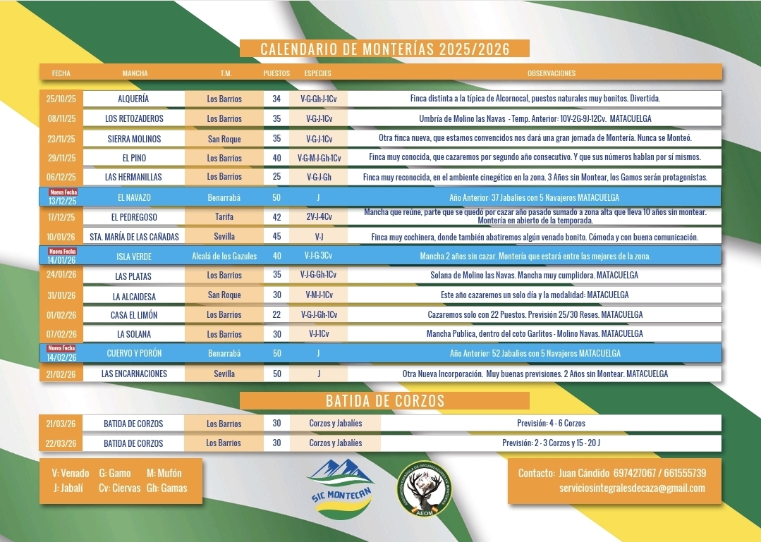 Con un 80% del programa vendido y 6 monterías ya completas, Servicios Integrales de Caza MONTECAN anuncia importantes novedades en su calendario.