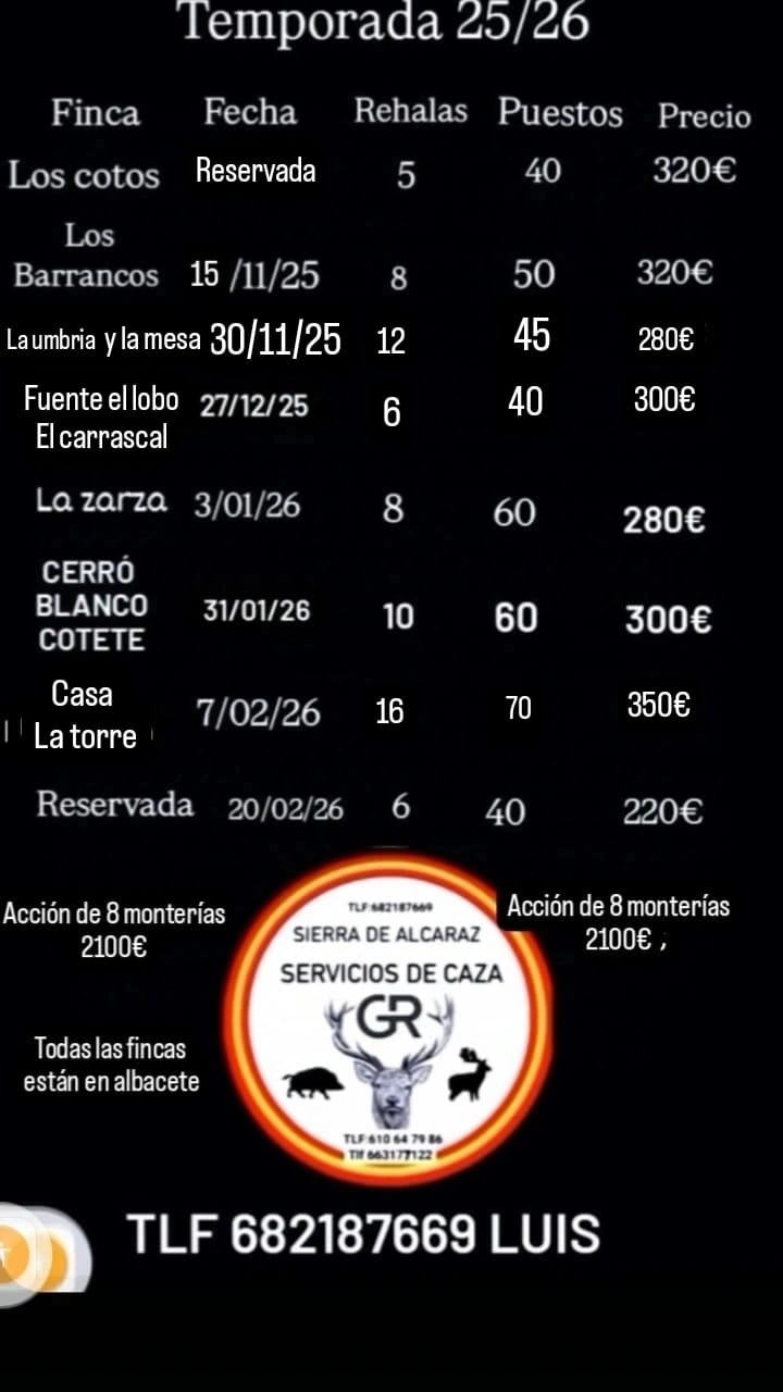 SIERRA DE ALCARÁZ GC acaba de actualizar su programa de monterías añadiendo otra finca al calendario.