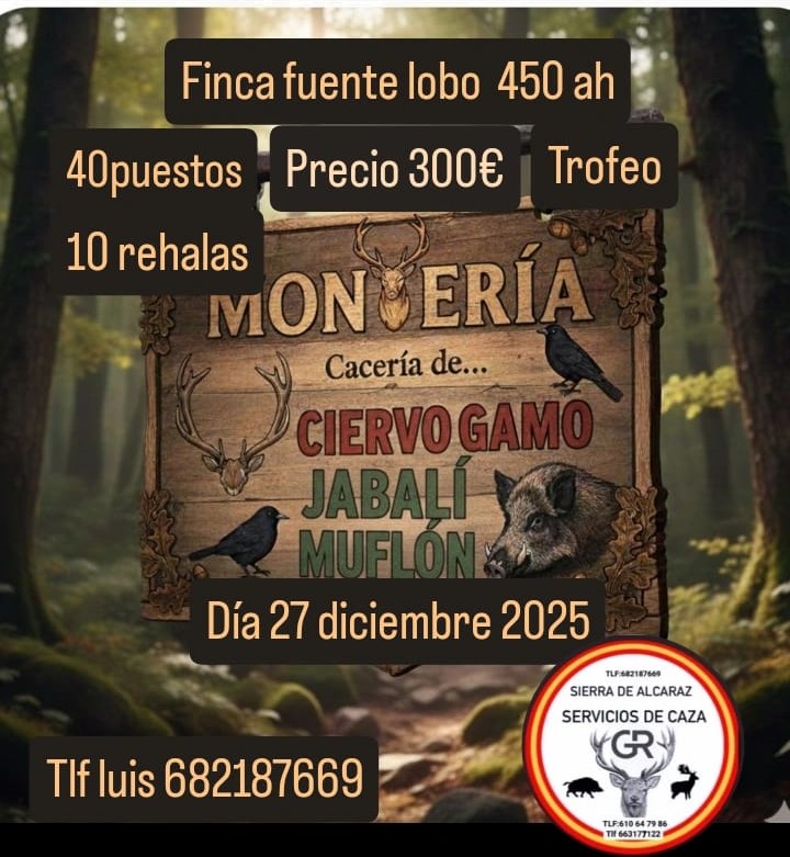 Tras haberse tenido que suspender por el mal tiempo, SIERRA DE ALCARÁZ monteará finalmente LA FUENTE DEL LOBO el próximo 27 de diciembre.