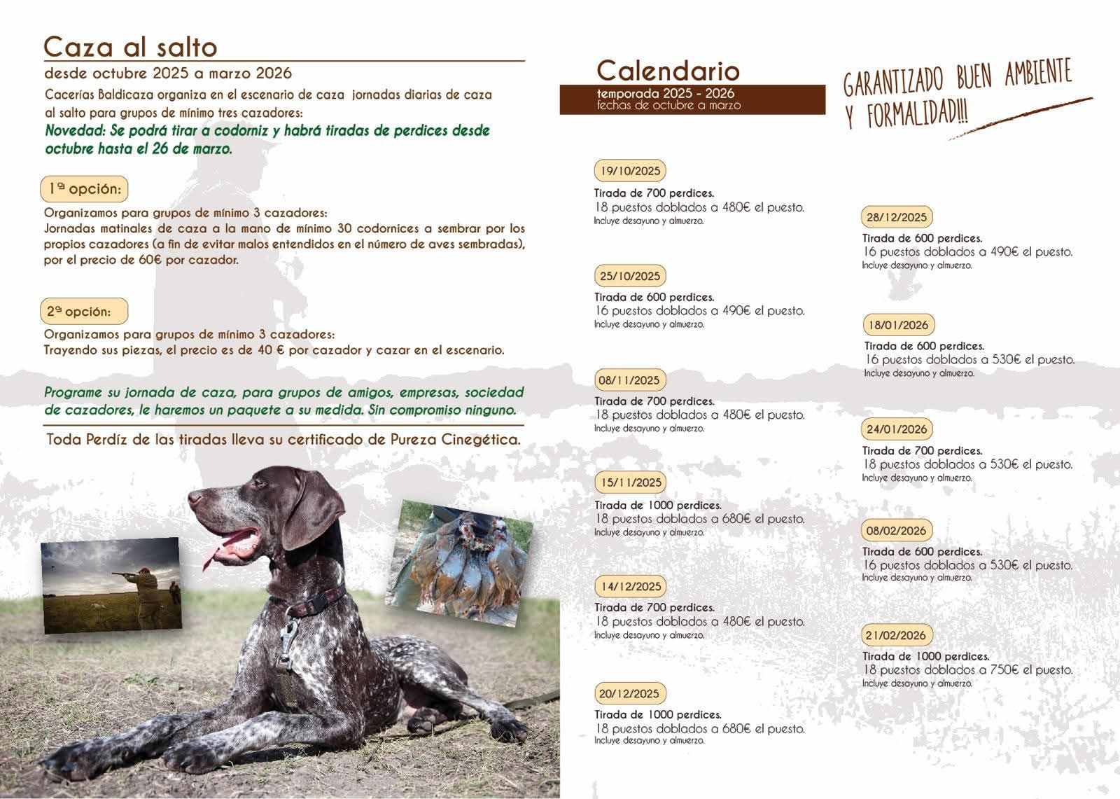 BALDICAZA acaba de publicar su tríptico oficial con todas las fechas de las tiradas de perdices programadas para la temporada 2025/2026.