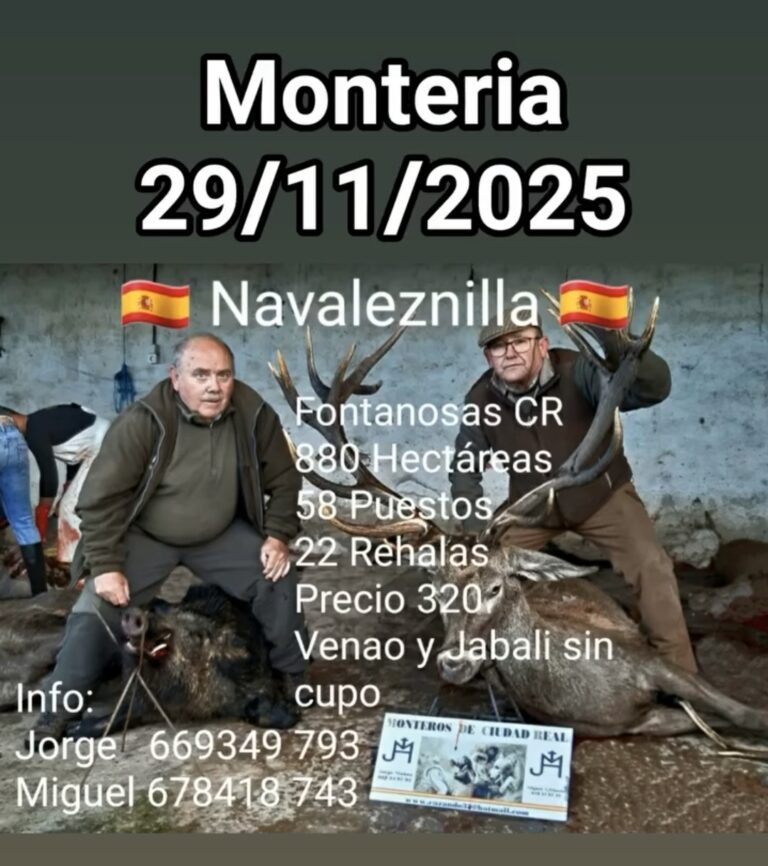 | 29/11/2025 | ![]() | CIUDAD REAL | NAVALEZNILLA | A | ![]() | MONTEROS DE CIUDAD REAL | 60 | J/V | S/C | 320 | Más info 689654327 |