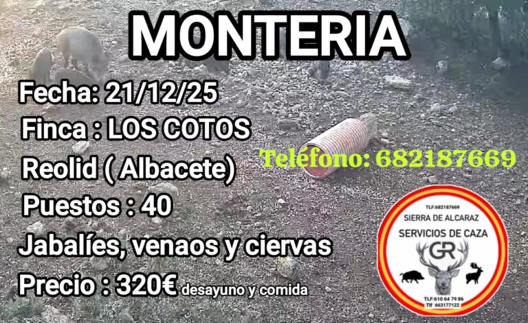 | 27/12/2025 | ![]() | ALBACETE | BREÑA/MESA/PINAREJO | A | ![]() | SIERRA DE ALCARAZ | 60 | – | S/C | 280 | Reserva |