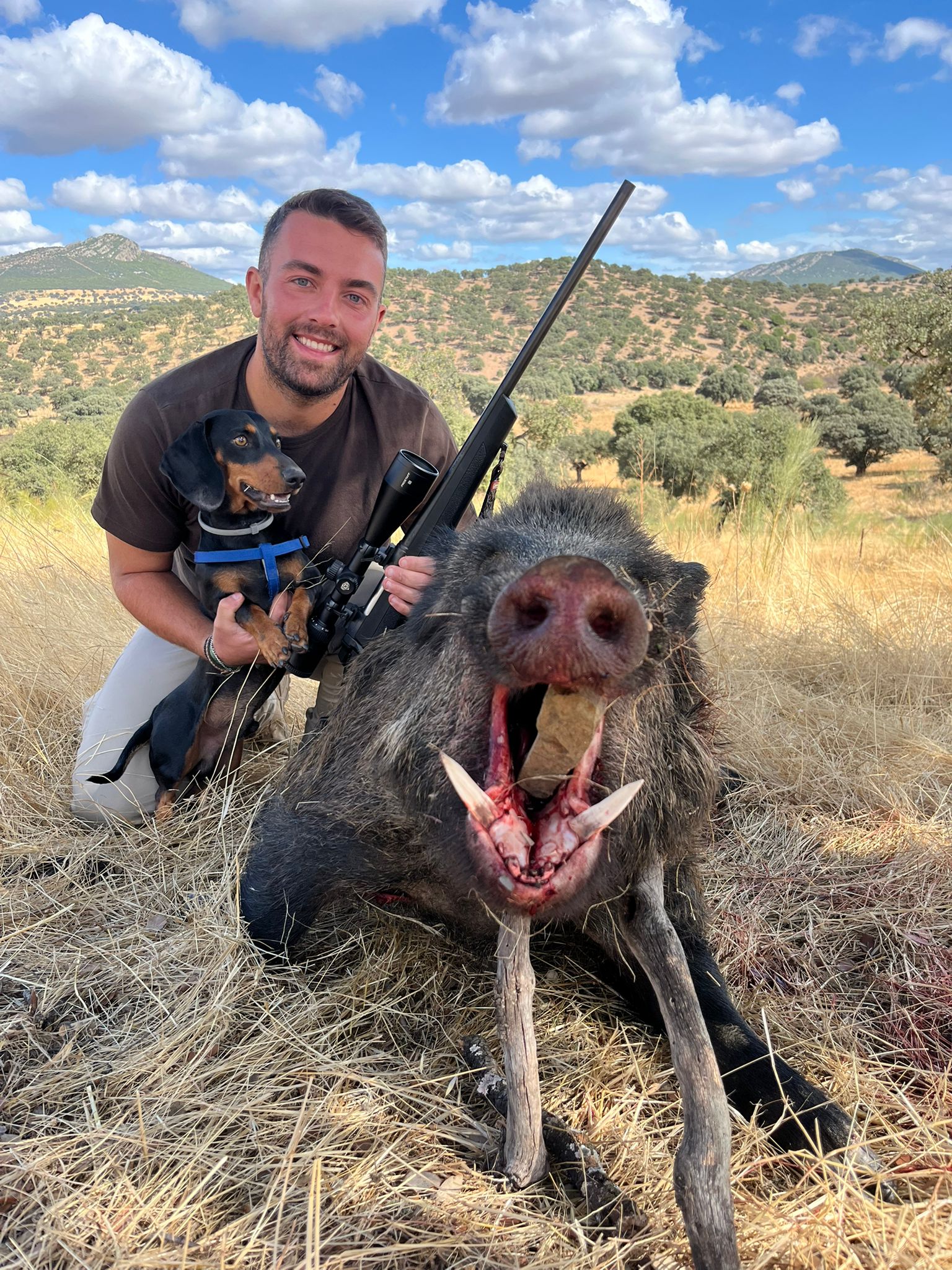 Hubo lances de principio a fin y los que aguantaron estóicos a la llegada del postor se vieron premiados con lances afortunados. No así, el amigo Donoso JR, a quien con el rifle en baja guardia y las caracolas sonando le sorprendió un gran jabalí parado a escasos tres metros en el número trece del comedero, el catorce cobraba también una cochina finalizando la montería, al igual que el dieciocho que le jugaba lance a otra cochina con la aguja del reloj rozando las tres de la tarde. Un navajero estupendo se cobraba en la misma suelta de los perros también a última hora.