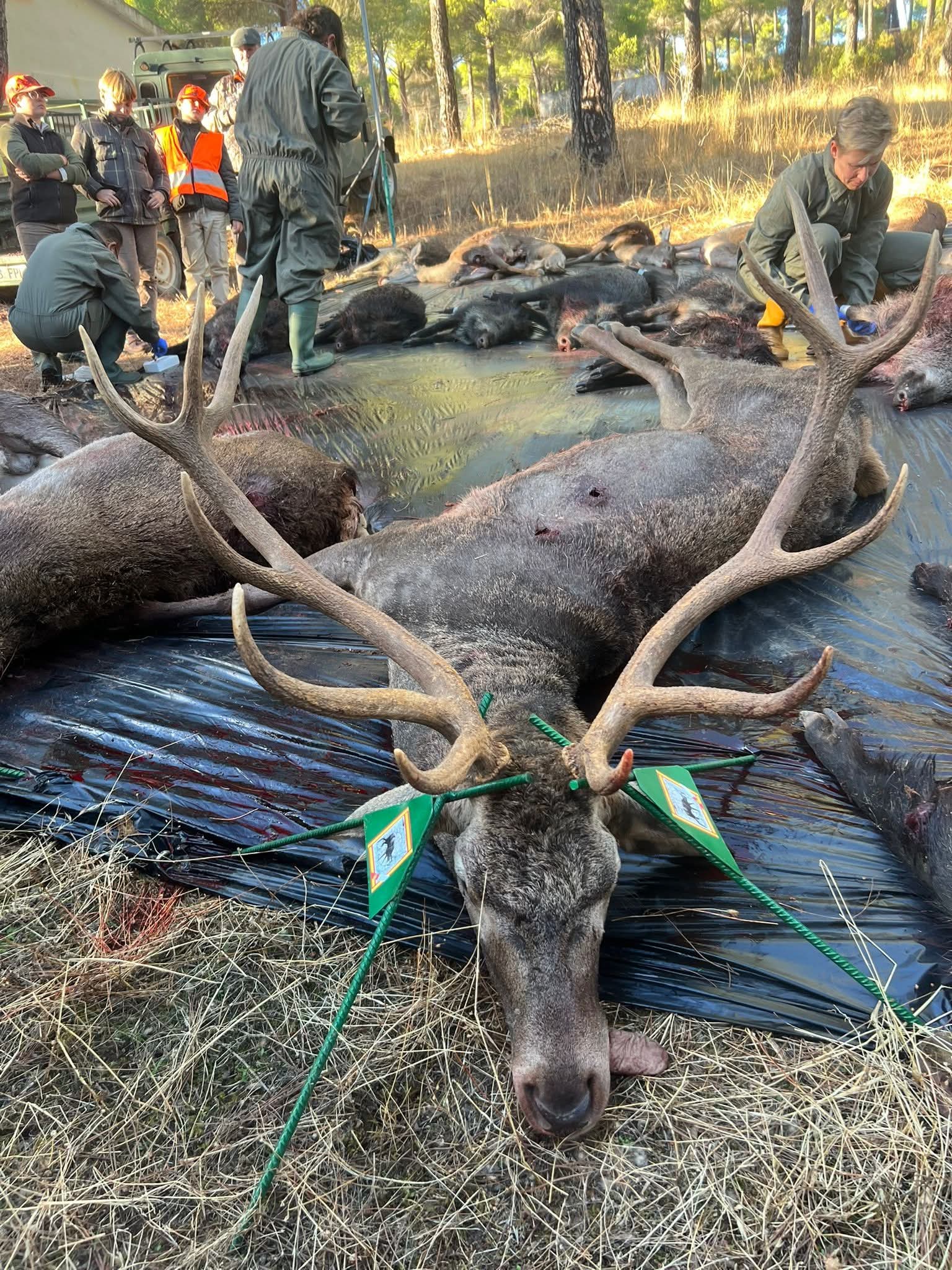 Al final la jornada nos dio un plantel de 17 guarros, 4 venados, uno muy bueno, y varias ciervas de gestión. Los gamos, como de costumbre, desaparecieron.
