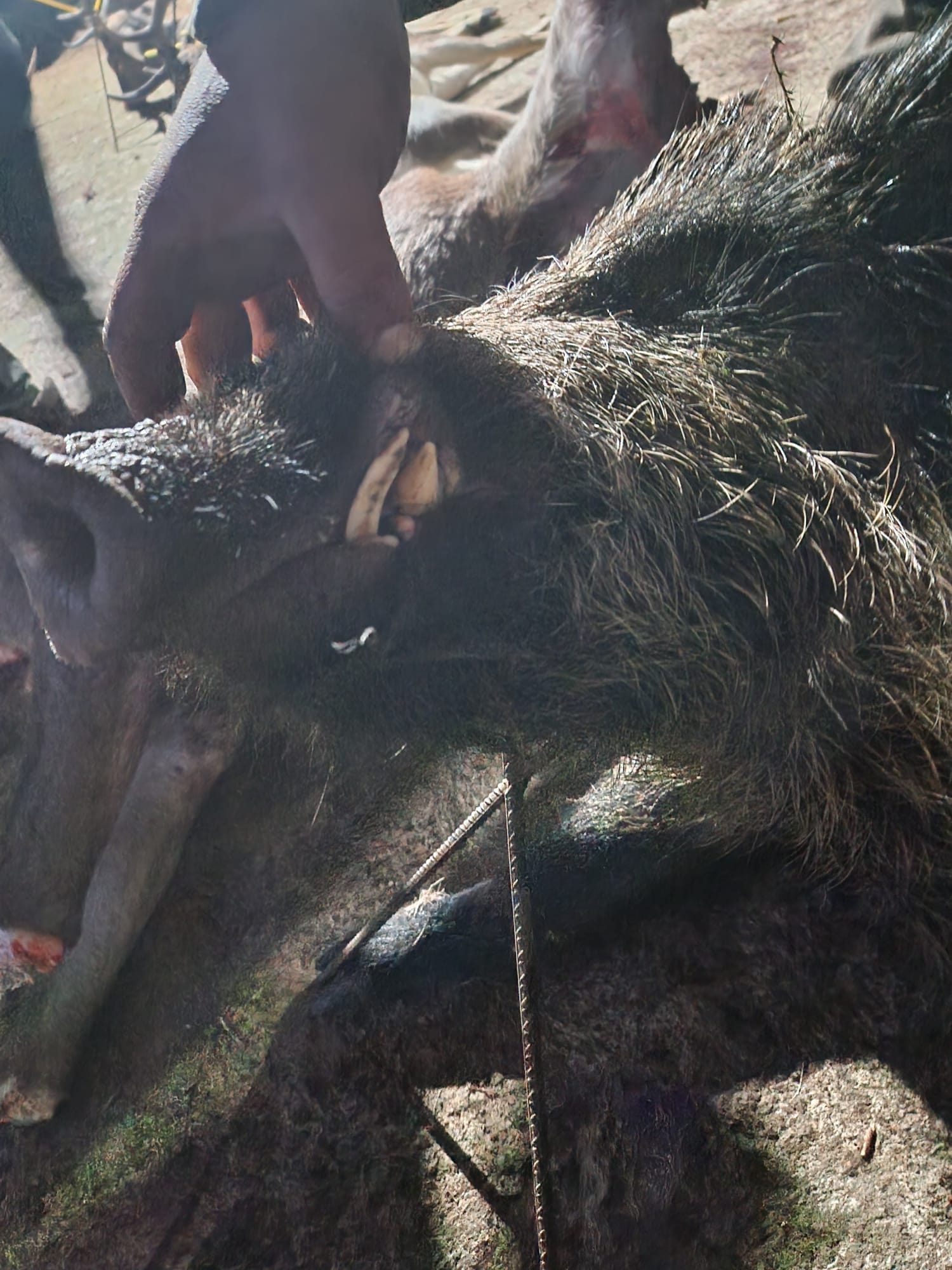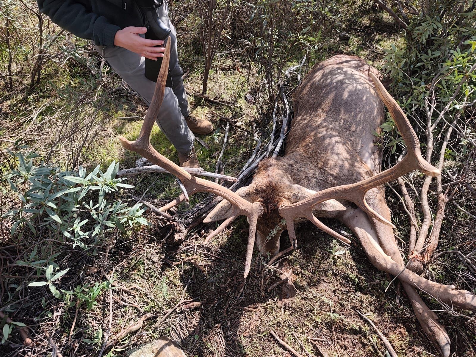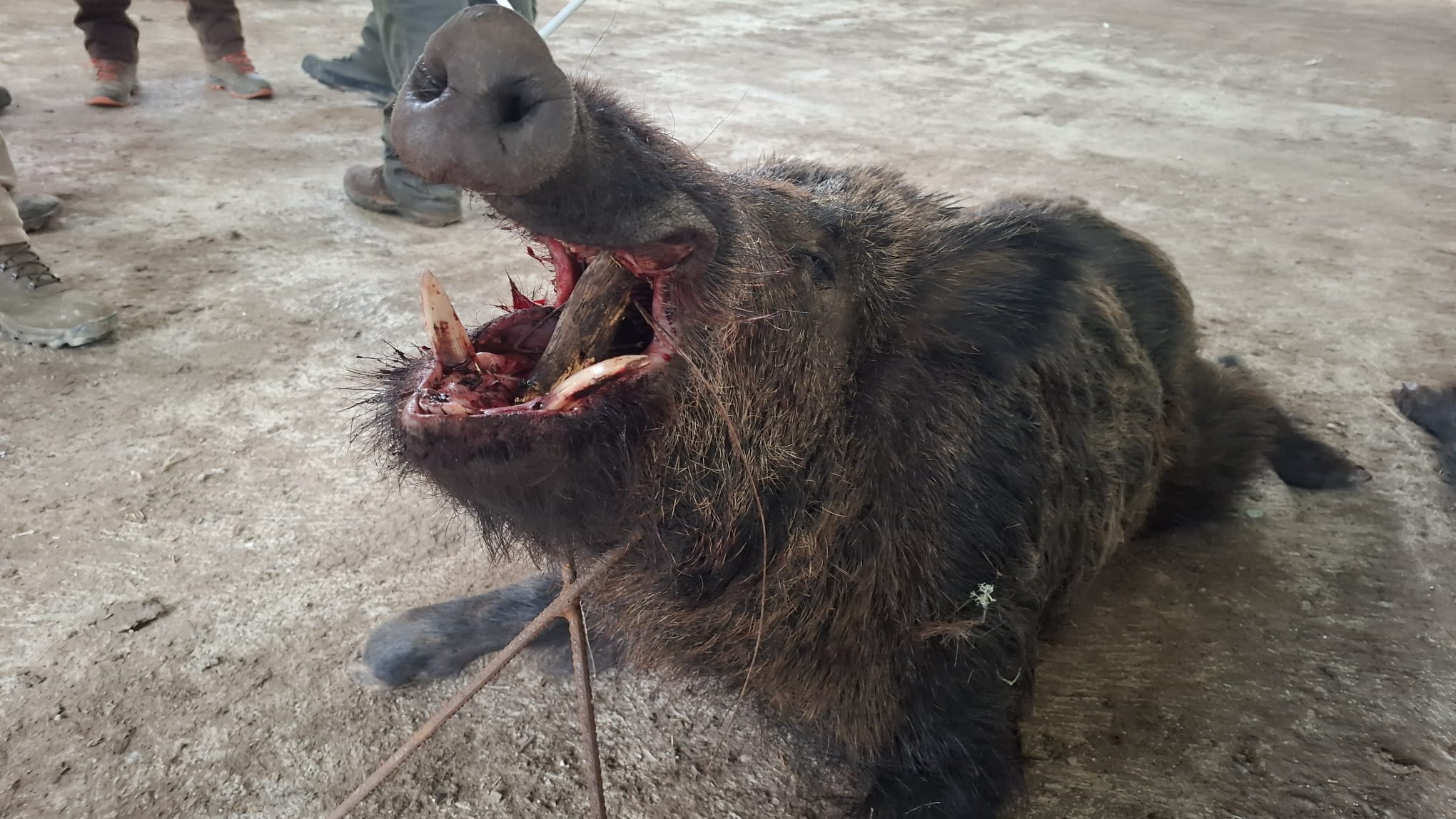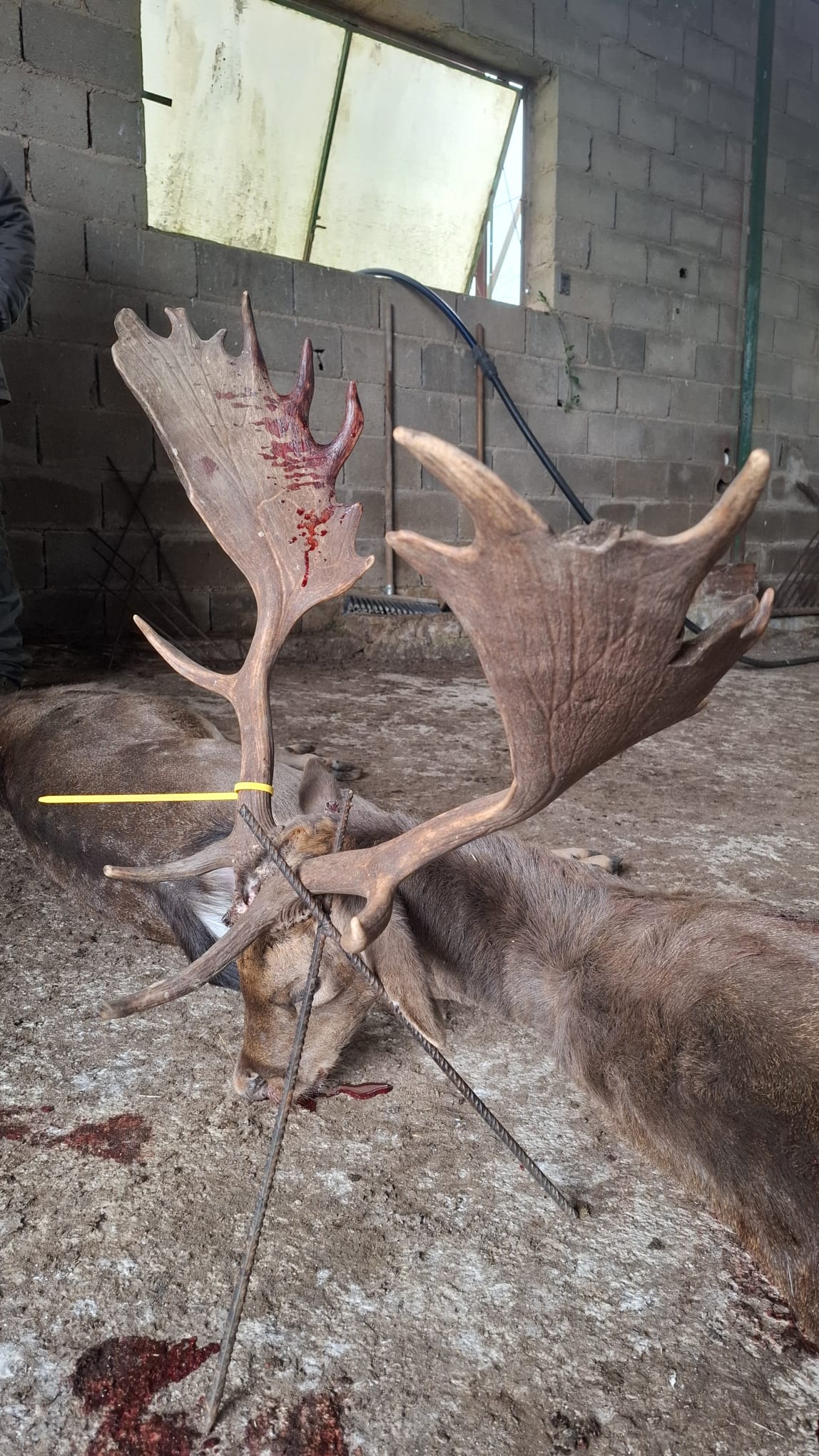 La misma intensidad y emoción que se vivió en muchas posturas por distintas armadas, como le ocurrió a Julen, abatiendo 2 venados, uno muy bueno, Manuel, que hizo doblete de gamos, uno de ellos posible plata, Raúl, que se hizo con el mejor venado de la jornada, posible bronce, Juan Robles, que abatía otro bonito venado, Manuel Alcalá, que se hacía con un bonito navajero rematado a cuchillo por las rehalas, Raúl, con 2 cochinos, uno de ellos navajero, en el nº 7 de Las Pizarras, Raquel y Pedro, que abatían 2 cochinos cada uno en sus respectivos puestos, siendo los de Pedro dos bonitos navajeros, José Fernández, Pepe Márquez, Alfonso Ecenarro o Luís SJB, con un cochino cada uno en sus posturas …, y así un buen número de puestos, sobre todo en las traviesas, donde los cochinos dieron mucho juego.