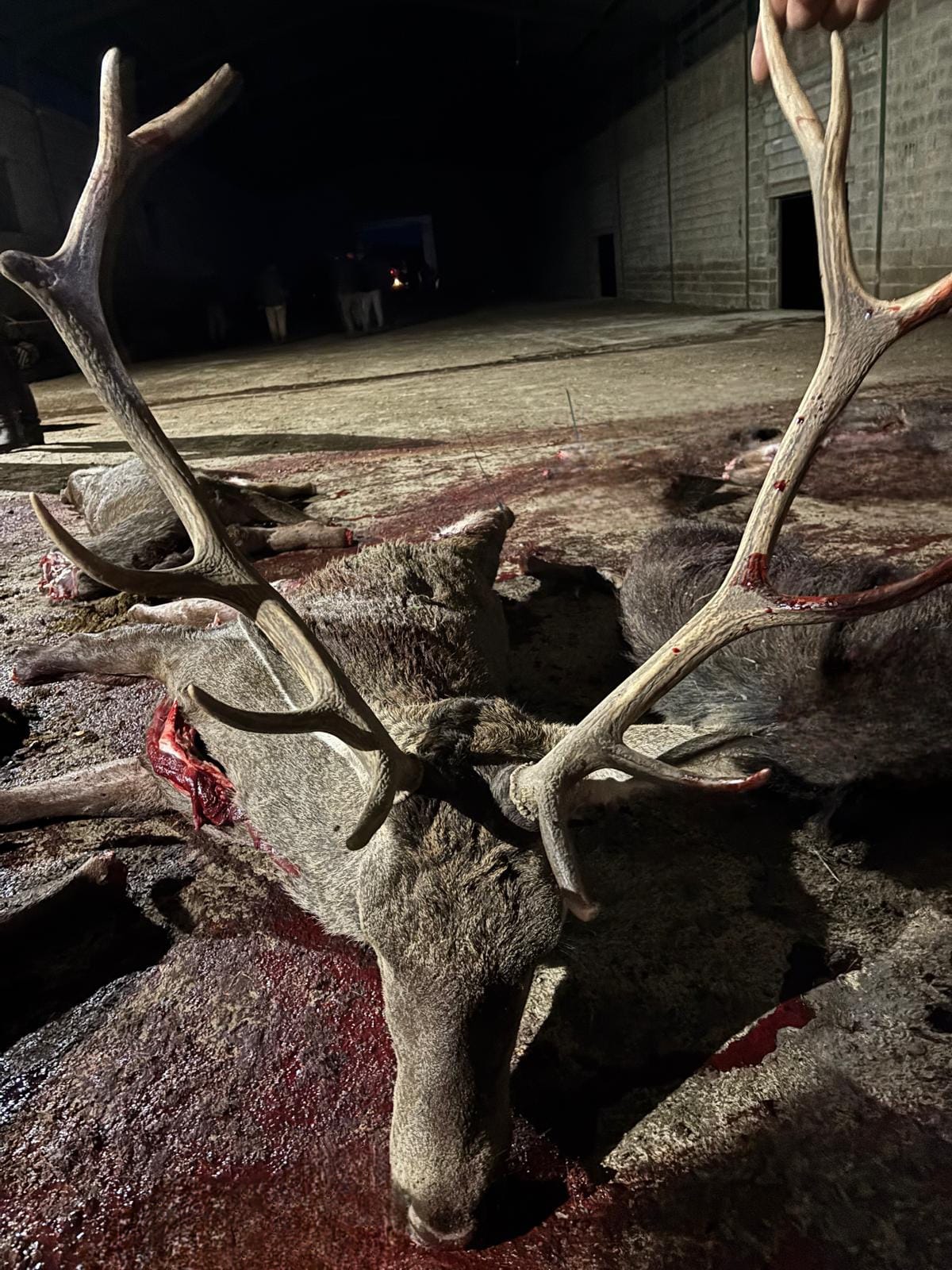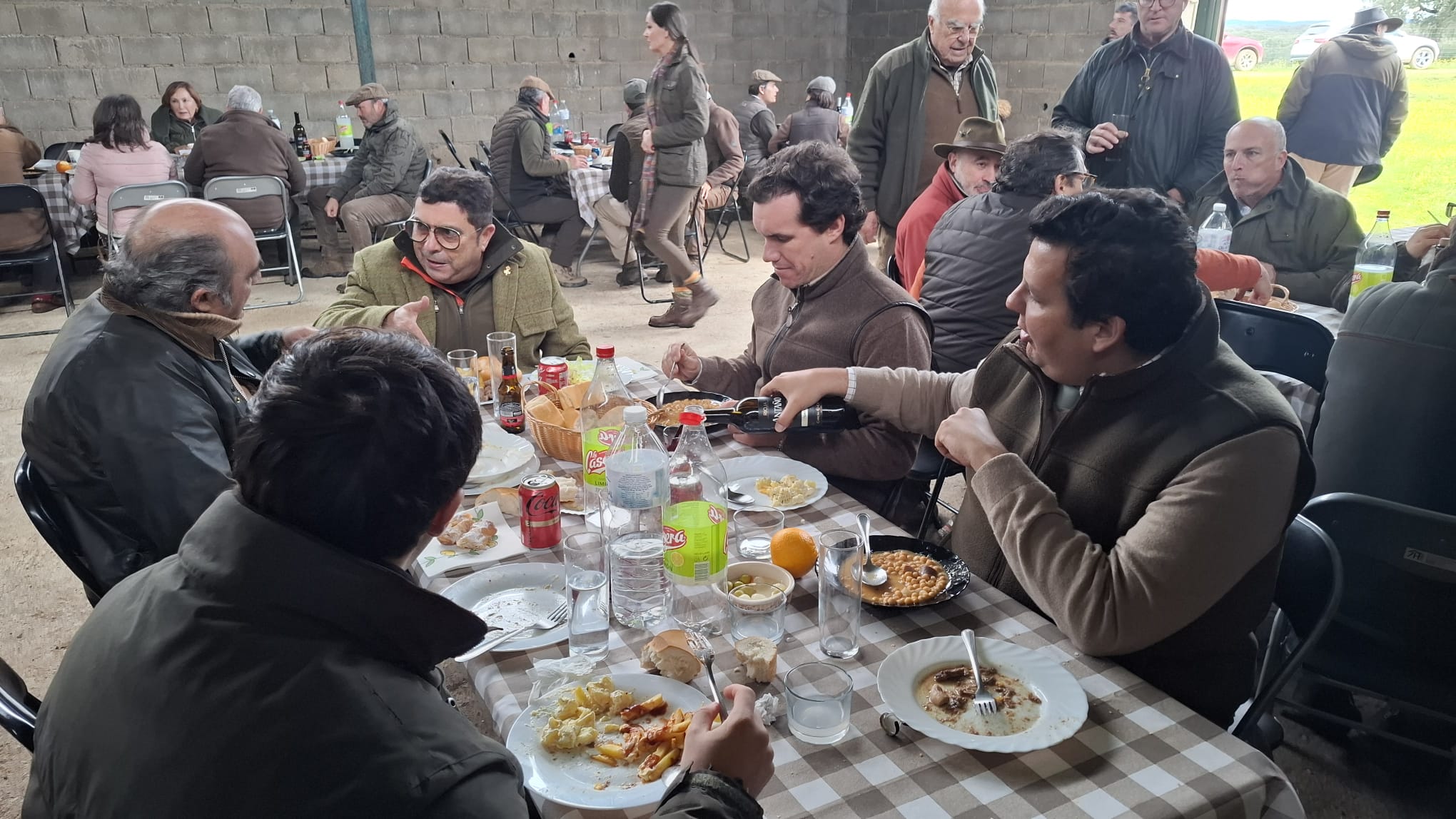 A las tres de la tarde se dio por concluida la montería y mientras los monteros degustaban un reconfortante almuerzo, el personal de campo de Extremeña de Monterías dirigido por Leoncio y Enrique se empleaban a fondo recogiendo los 45 jabalíes, 19 venados y 2 gamos que se abatieron durante la jornada.
