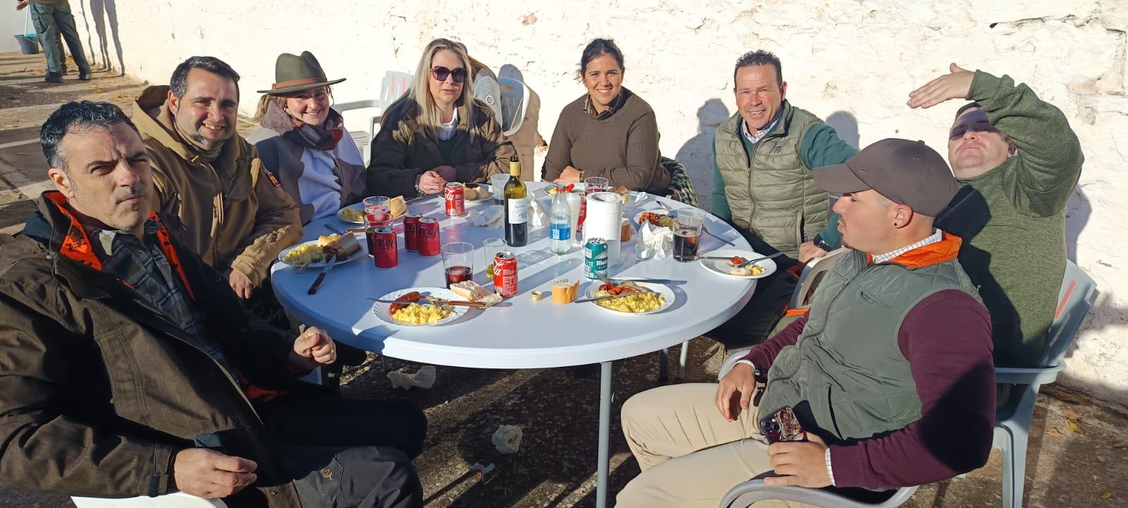 Citaba a los monteros a las 9:00h, dándoles un poco de descanso, ya que muchos de ellos hacían doblete, y con las legañas en los ojos iban llegando a la junta, donde después de un buen desayuno para coger fuerzas, y tras el sorteo y normas, las armadas se iban colocando en el cazadero a la vez que las detonaciones se sucedían por los primeros cierres.