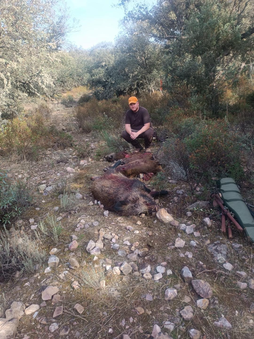 Algunos puestos abatieron 5 marranos, otros con menos fortuna, y el puesto nº1 del Cortijo Viejo pinchaba un venado de categoría que luego hubo que pistear sin fortuna.
