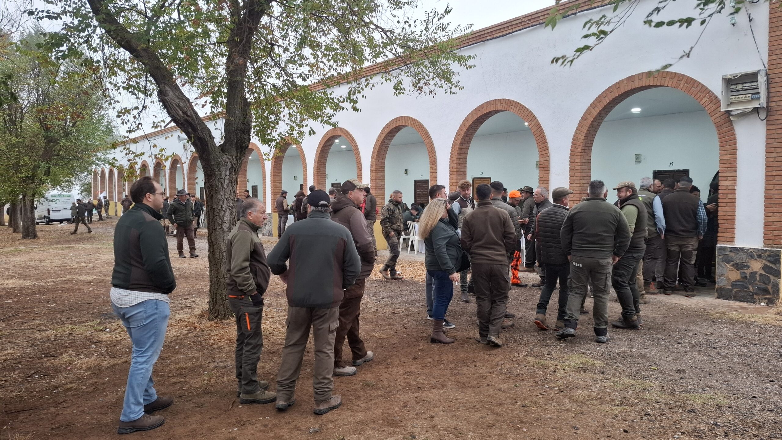 Los monteros que ocuparon los 70 puestos que cerraron la mancha fueron convocados a las 7:45h en el Santuario de Ntra. Sra. de los Desamparados, en Villanueva de la Fuente, ubicación que se envió la tarde anterior a última hora dada la previsión de lluvias que ponían para el domingo. ¡Y menudo acierto!, pues durante el desayuno y sorteo cayó una manta de agua de las que te pones calado hasta los huesos si te coge fuera de cobijo.