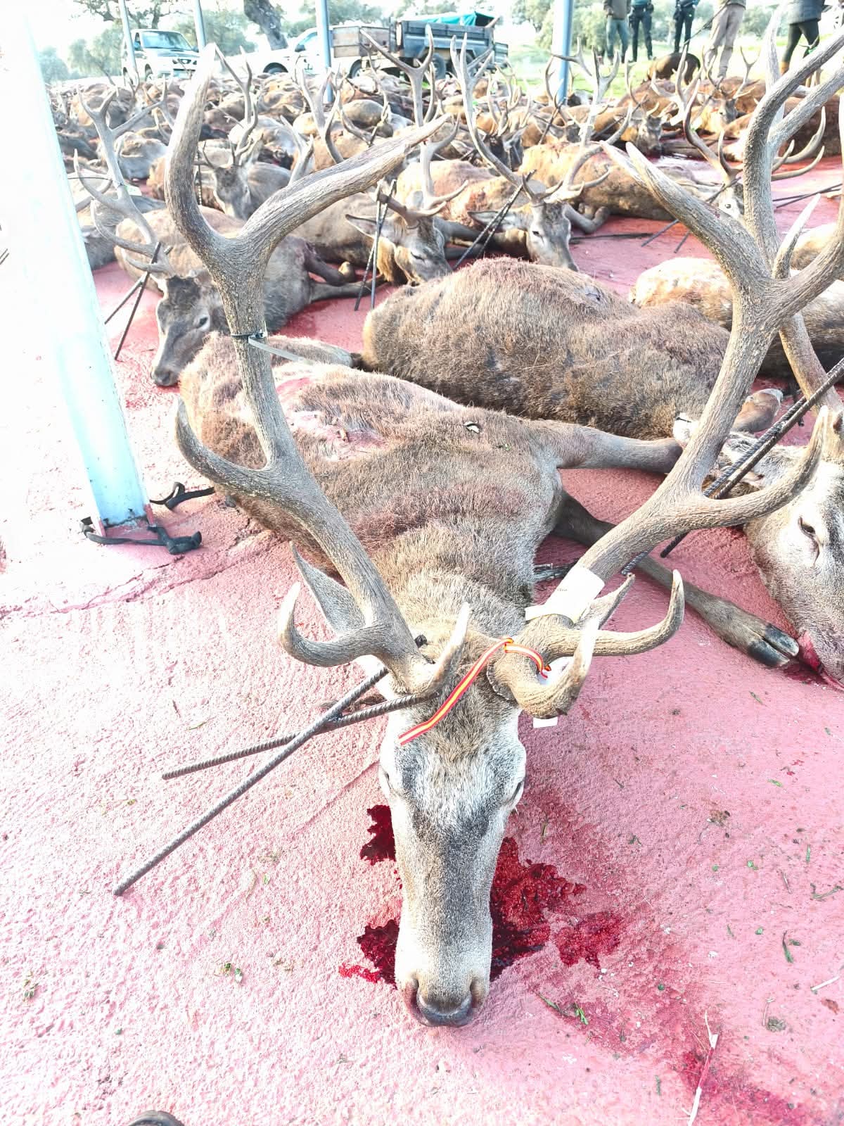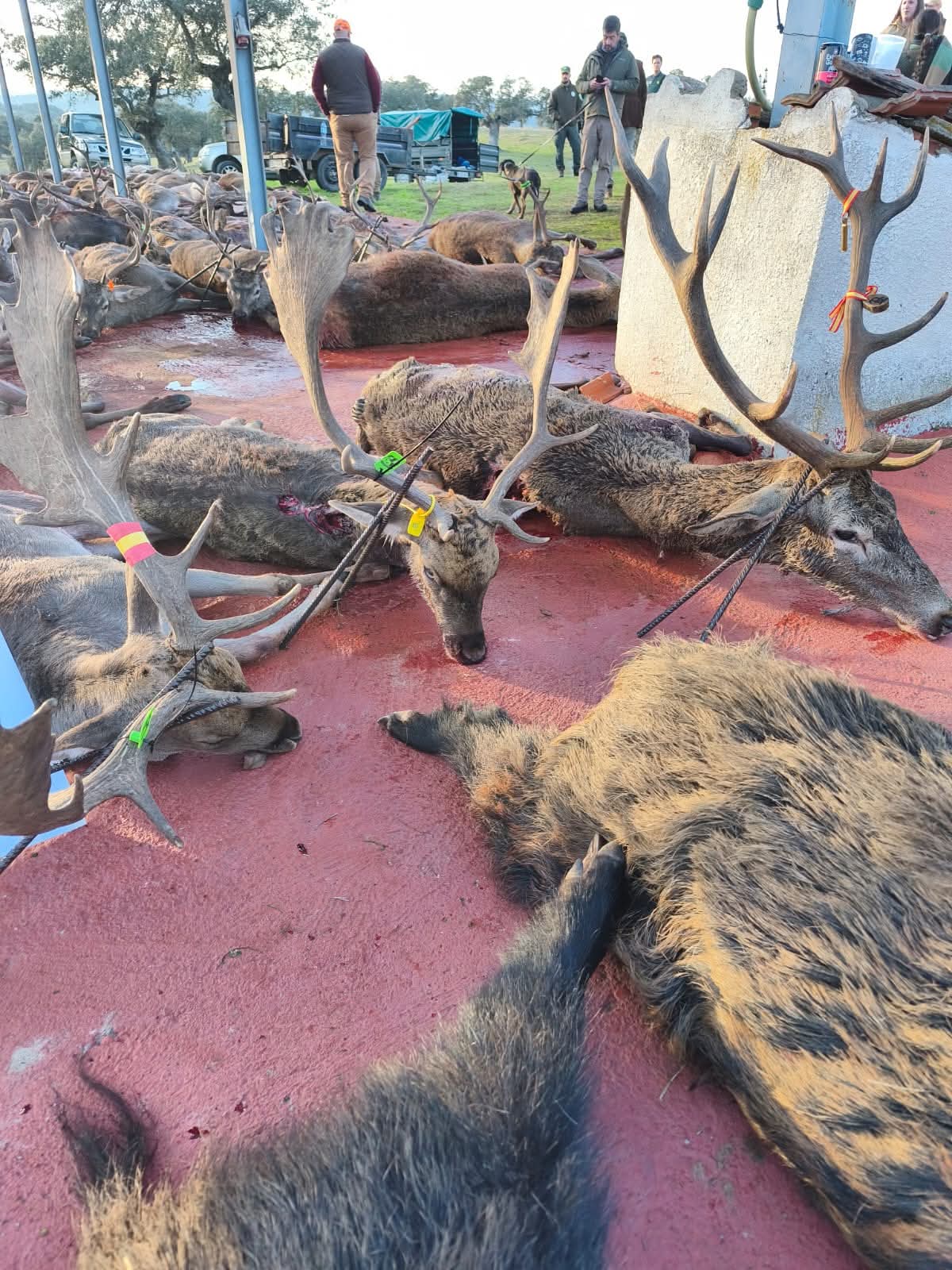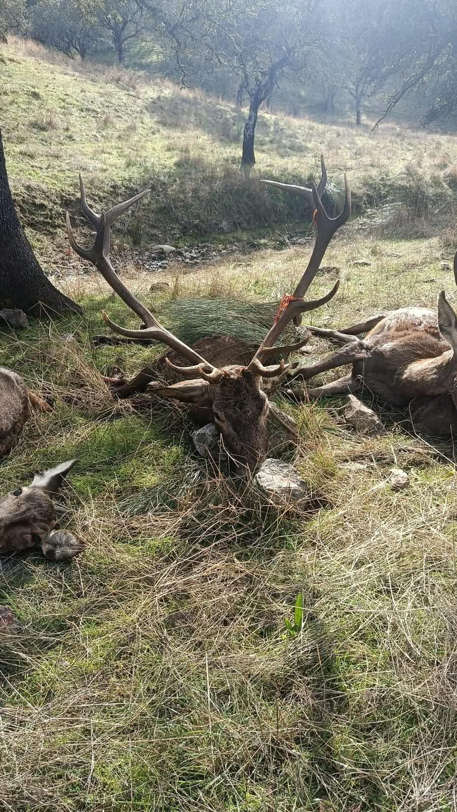 Impresionante la rápida recogida de los animales abatidos por parte de la gente de campo, volviendo a demostrar una vez más su profesionalidad y compromiso con la montería, dado que cuando se abaten tantos animales las recogidas, o están muy bien organizadas, o se retrasan bastante, y la montería no termina con el sonido de las caracolas, termina una vez recogidos los animales abatidos para llevarlos a la junta de reses.