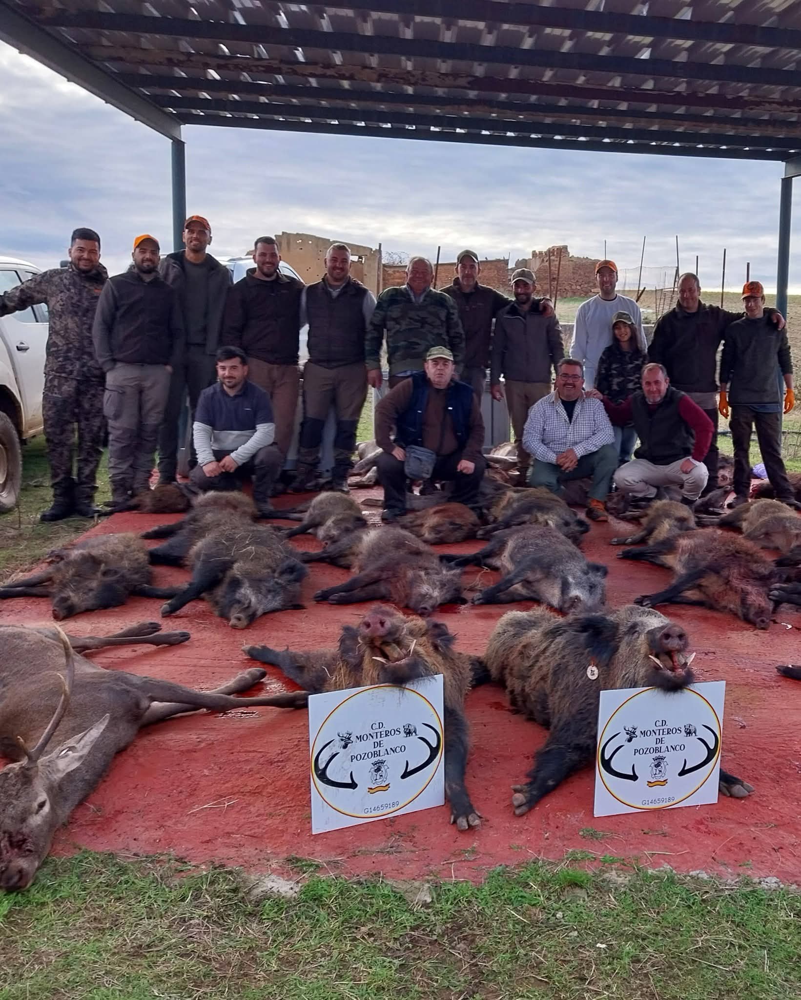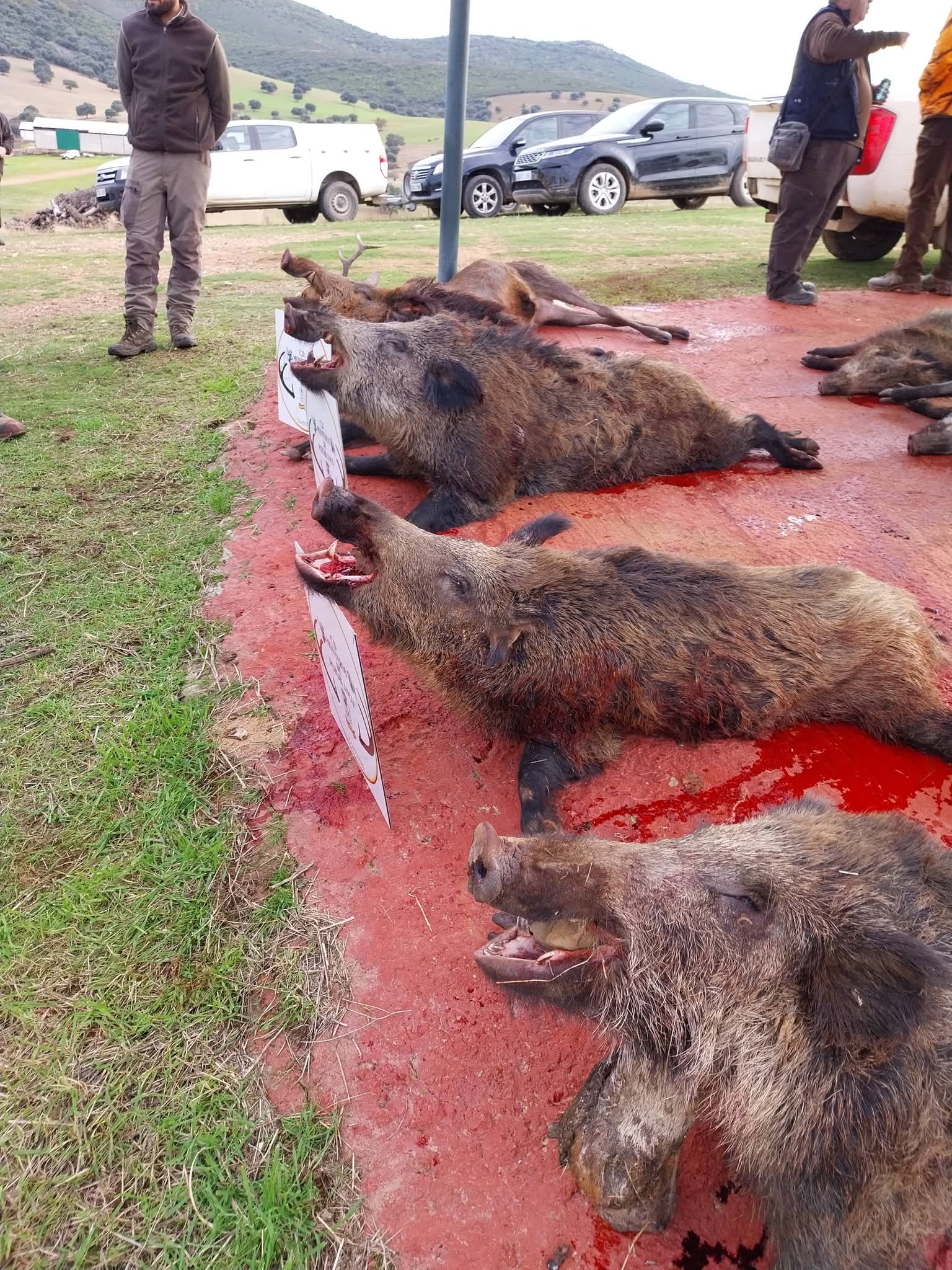 A las 15:00h, una vez llegadas las rehalas de nuevo a su punto de partida, y al toque de la caracola, se daba por finalizada la celebración de esta montería, dando paso a la recogida de las 42 reses abatidas, entre las que había 20 jabalíes, con 5 navajeros, dos de ellos medallables, 3 venados y 8 ciervas. Un resultado moderado, pero de gran calidad, con dos jabalíes medallables