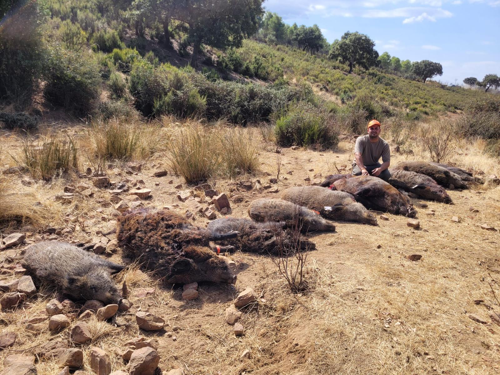El día prometía ser caluroso y las 4 rehalas convocadas no tardaron en ponerse manos a la obra empezando a arrimar guarros a las posturas desde el mismo instante de la suelta, habida cuenta de la tremenda densidad de caza que tenía la mancha.
