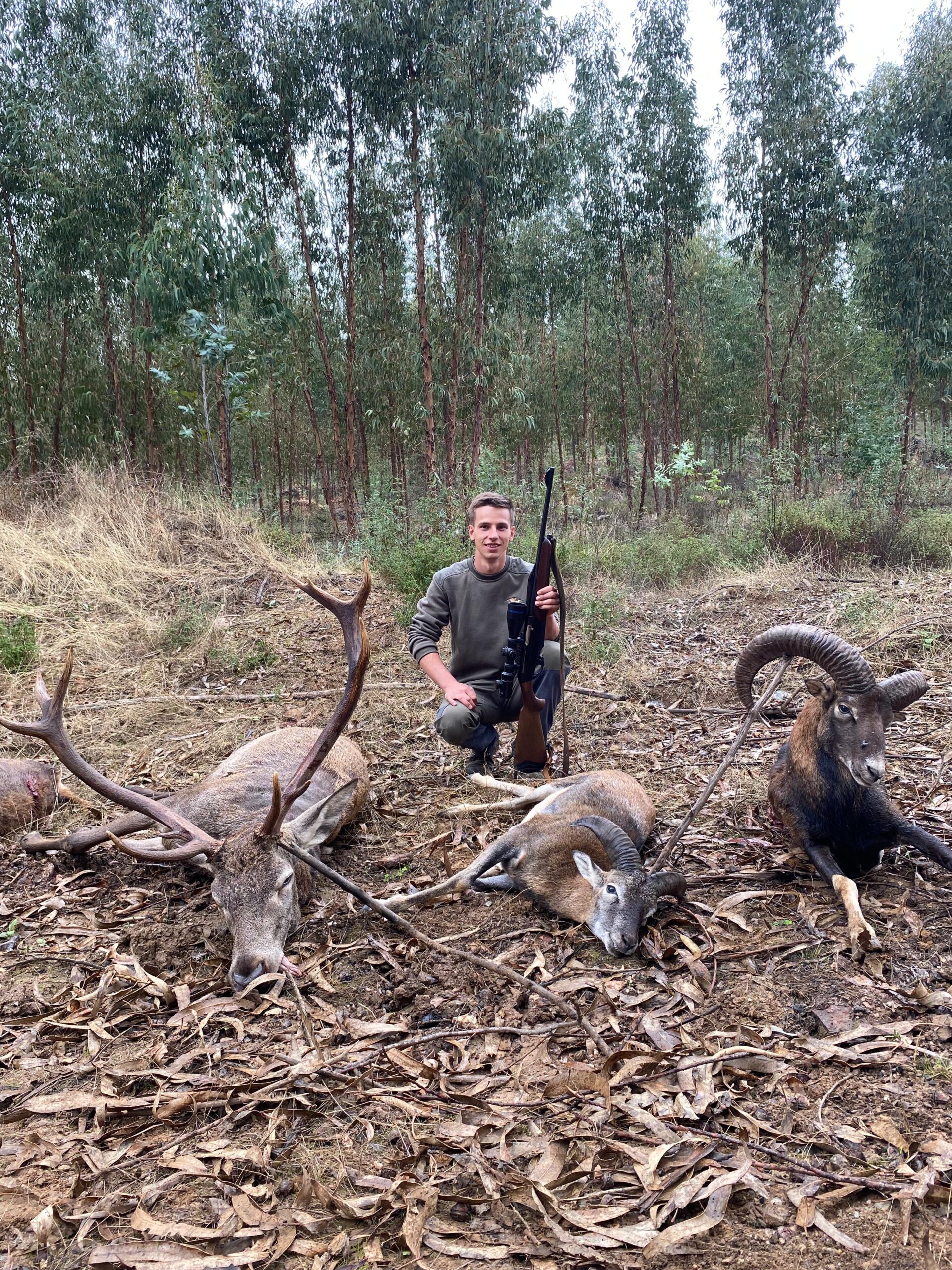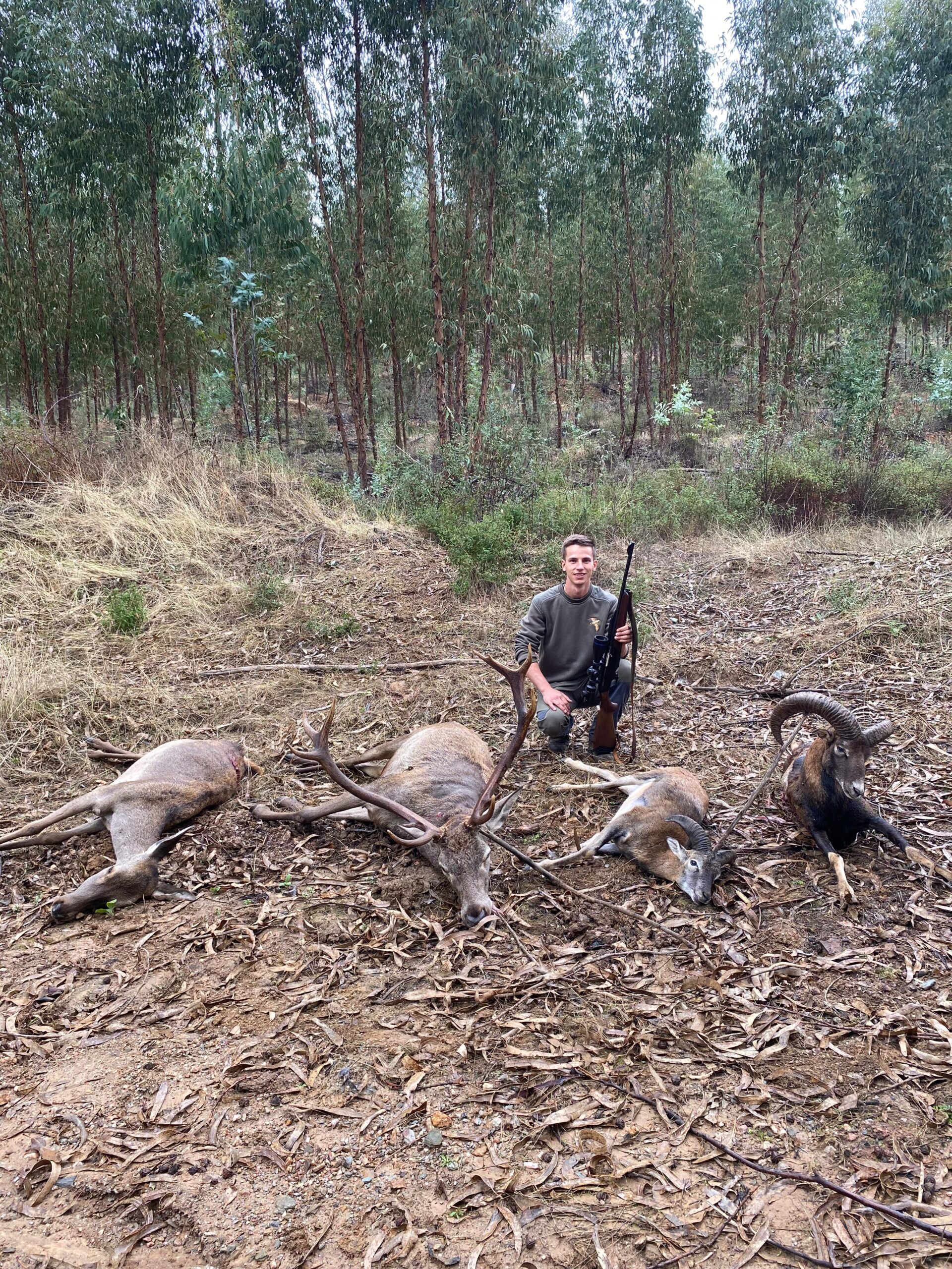 Abatir 42 reses de tiro entre 52 escopetas en una finca abierta compuesta por profundos barrancos de eucaliptos en un día de aire, que terminó en llovizna de mitad de monteo en adelante, puede resultar sin duda de lo más exitoso. Sobre todo si además los monteros se divirtieron de lo lindo en su gran mayoría y hubo quienes tuvieron el puesto de su vida, abatiendo muflones, venados y jabalíes en el mismo, como ocurrió en varios puestos de la montería y en el cierre del Caramelo.