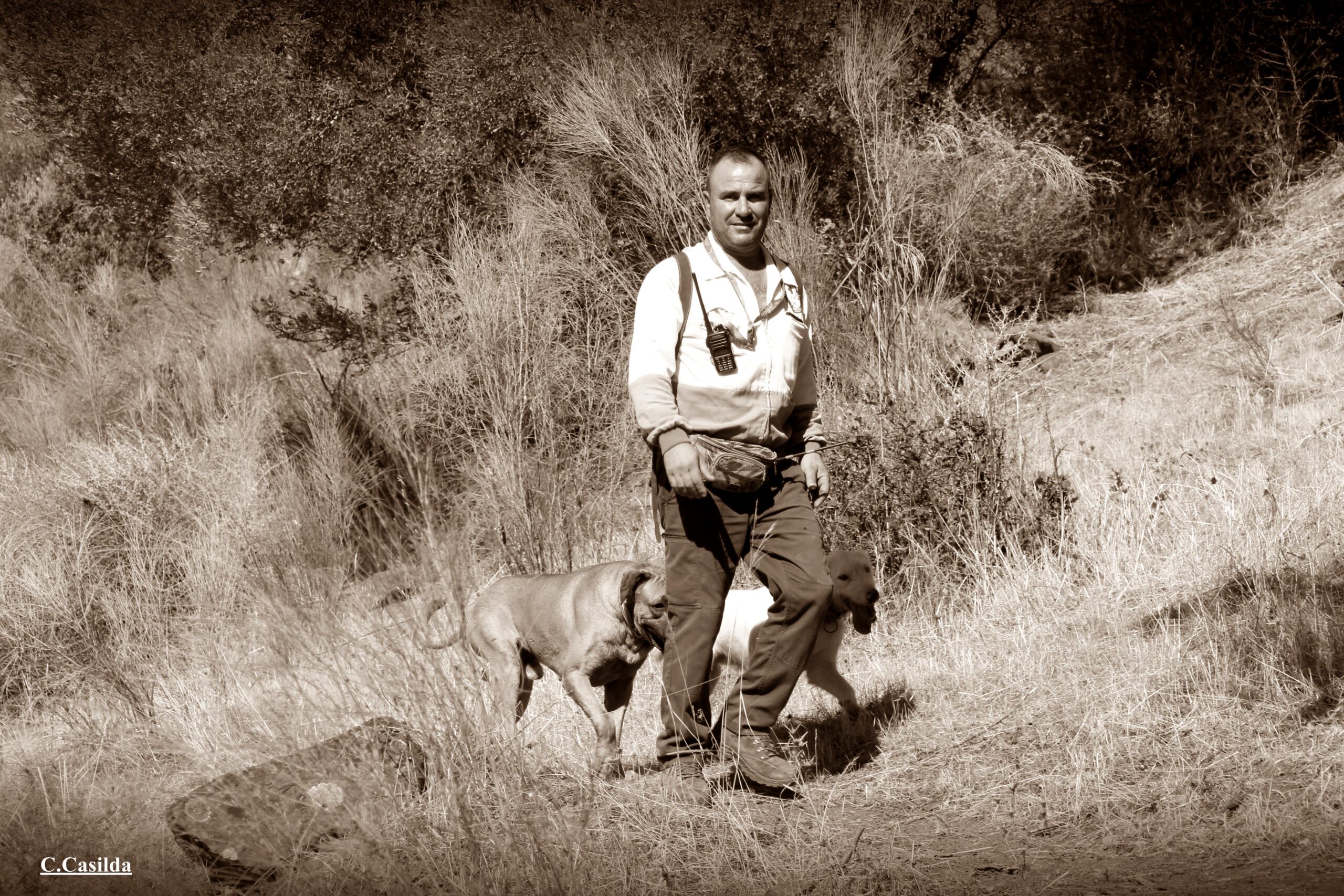 El primer perrero en pasar, pero por el lado opuesto del barranco fue el amigo Agustín que registró el barranco de zarzales sin éxito y volcó el cerro hacia el lado opuesto, dando dos de las tres ciervas y empujándolas con toda su rehala.