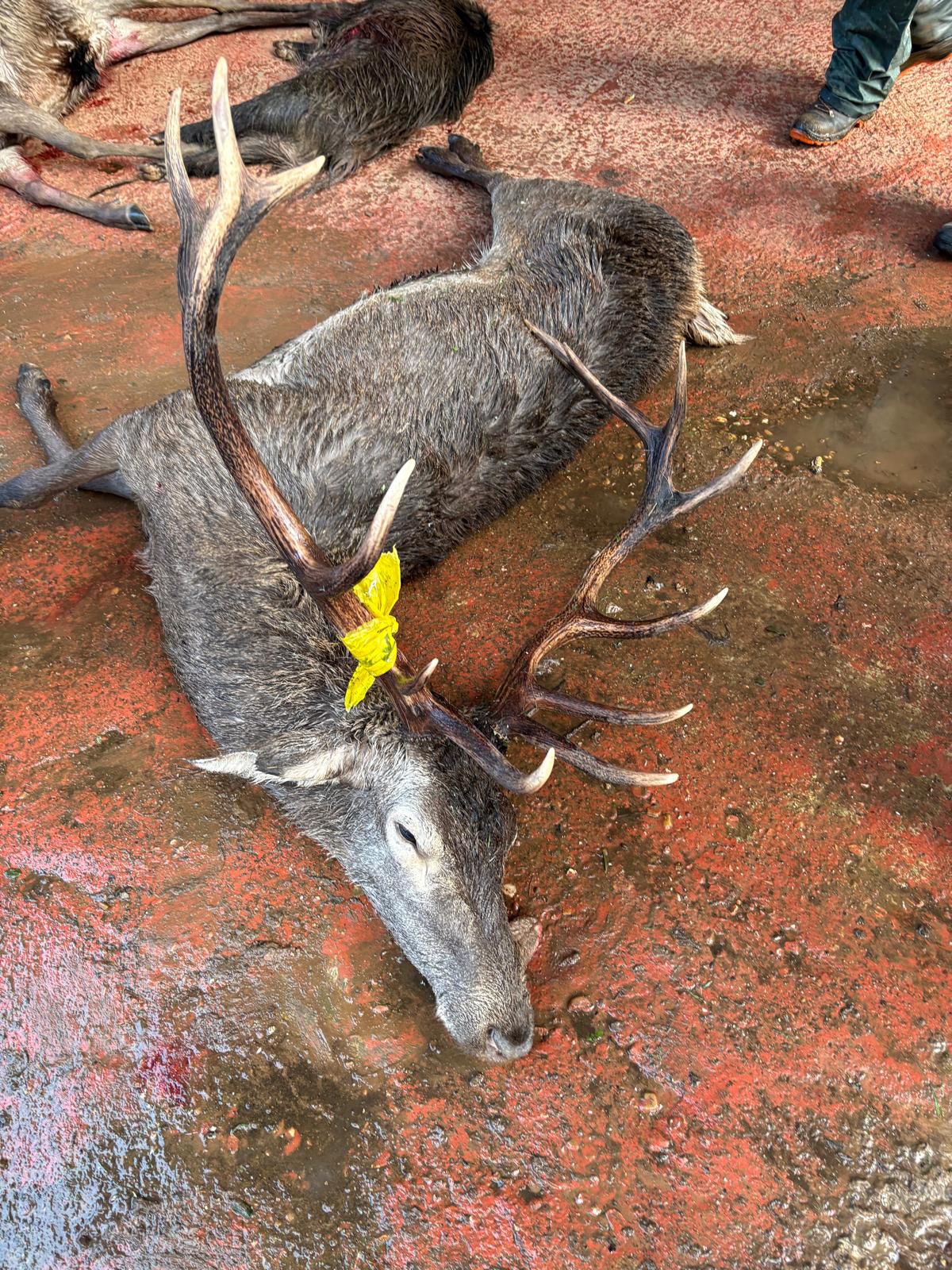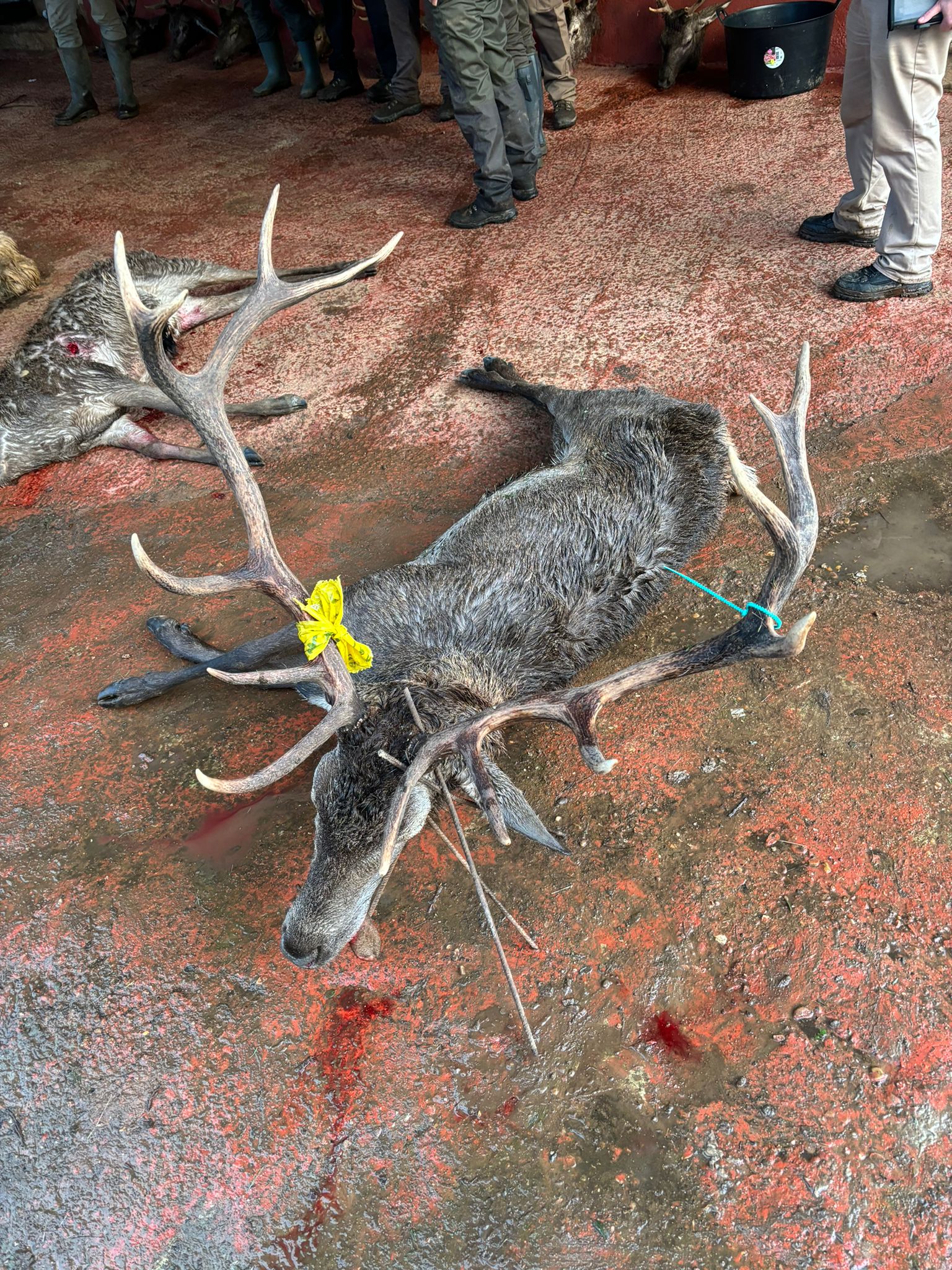 Después de un día de lucha continua contra las inclemencias meteorológicas y contra las reses montunas, que aprovecharon el día para ponérnoslo aún más difícil, obtuvimos un resultado de 18 cochinos (varios navajeros),17 Venados ( 2 destacados) y un puñado de hembras de gestión.