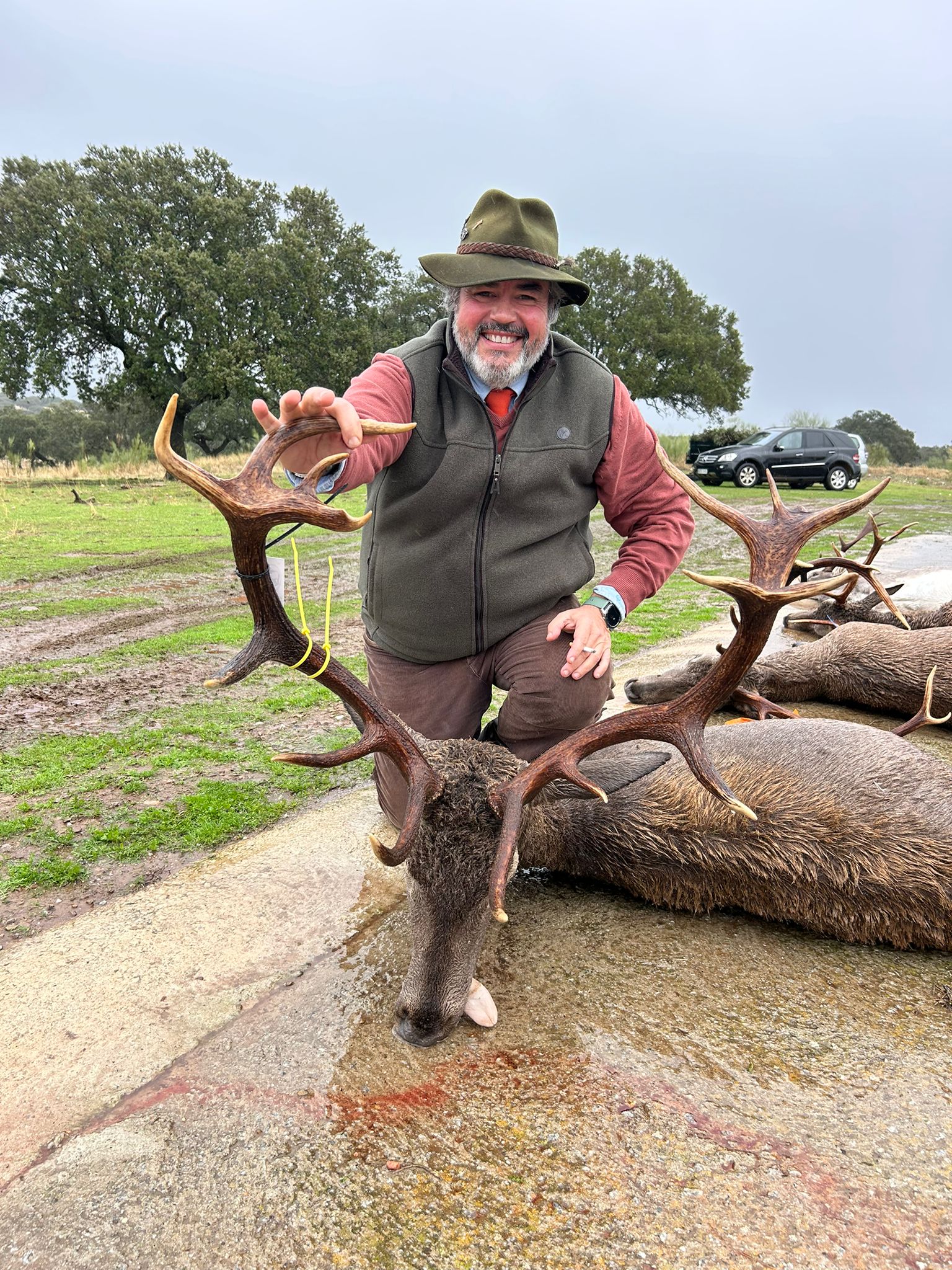 En primer lugar por el excelente trabajo de propiedad, guardería y organización en la preparación de la mancha para devolverla al estatus y al lugar que se merece, y que no es otro que el de posicionarse como una de las tres mejores monterías de venados en abierto de España. Y aquí tenemos que darle la enhorabuena a Álvaro y familia, propietarios de la finca, por el cariño y la pasión con el que preparan la montería de su casa, a Lolo el guarda y Marisol, su mujer, por dejarse el alma cuidando la mancha 365 días al año, y a Javier Rodríguez Torrecilla y Jorge Cardador (Pelillo SC), por apostar fuerte y en firme por esta mancha y darla en la fecha indicada a pesar de las amenazantes lluvias que daban para ese día en gran parte de España y que hicieron suspender multitud de monterías.
